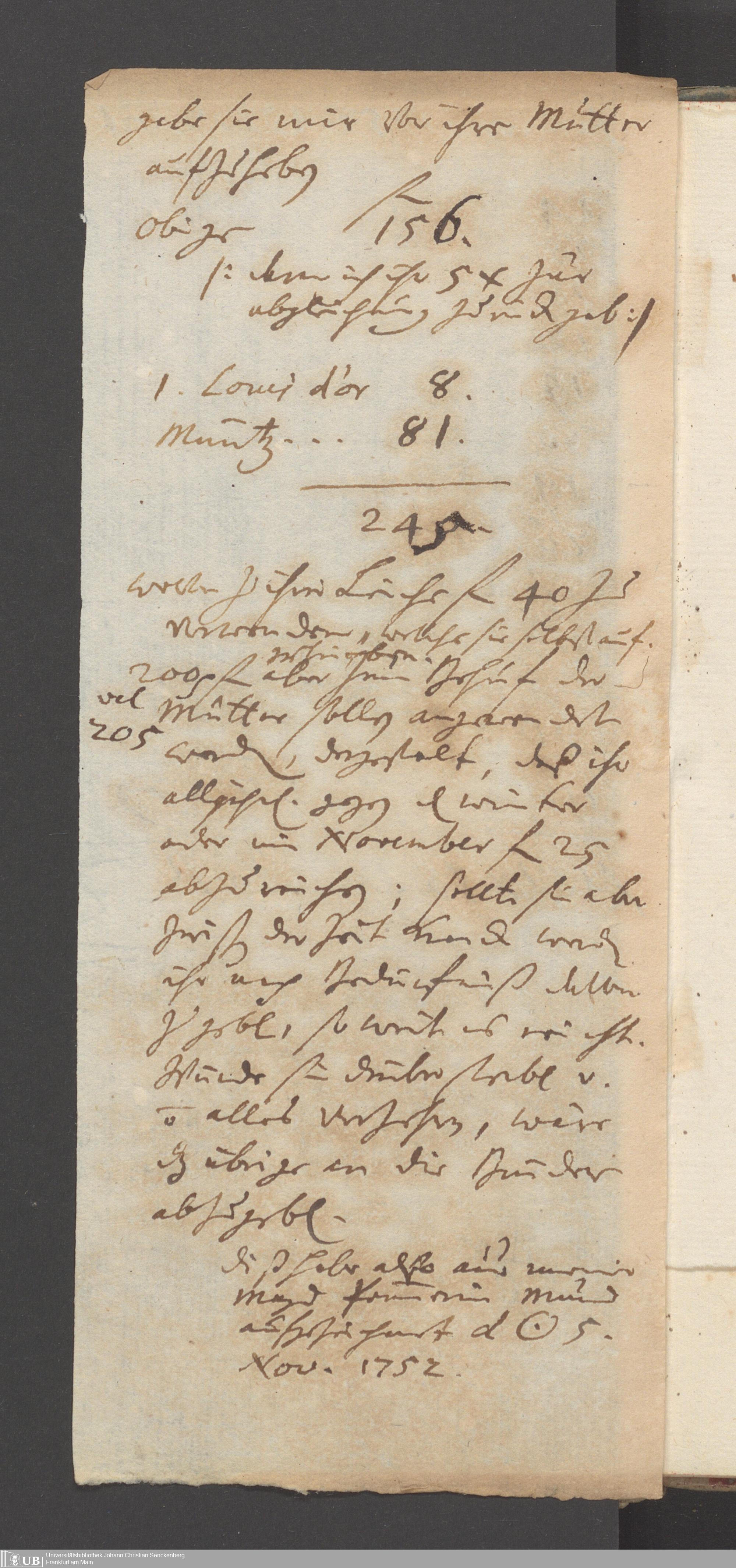 Na 31 Nachlass Johann Christian Senckenberg, 445 - Ausgabenbuch