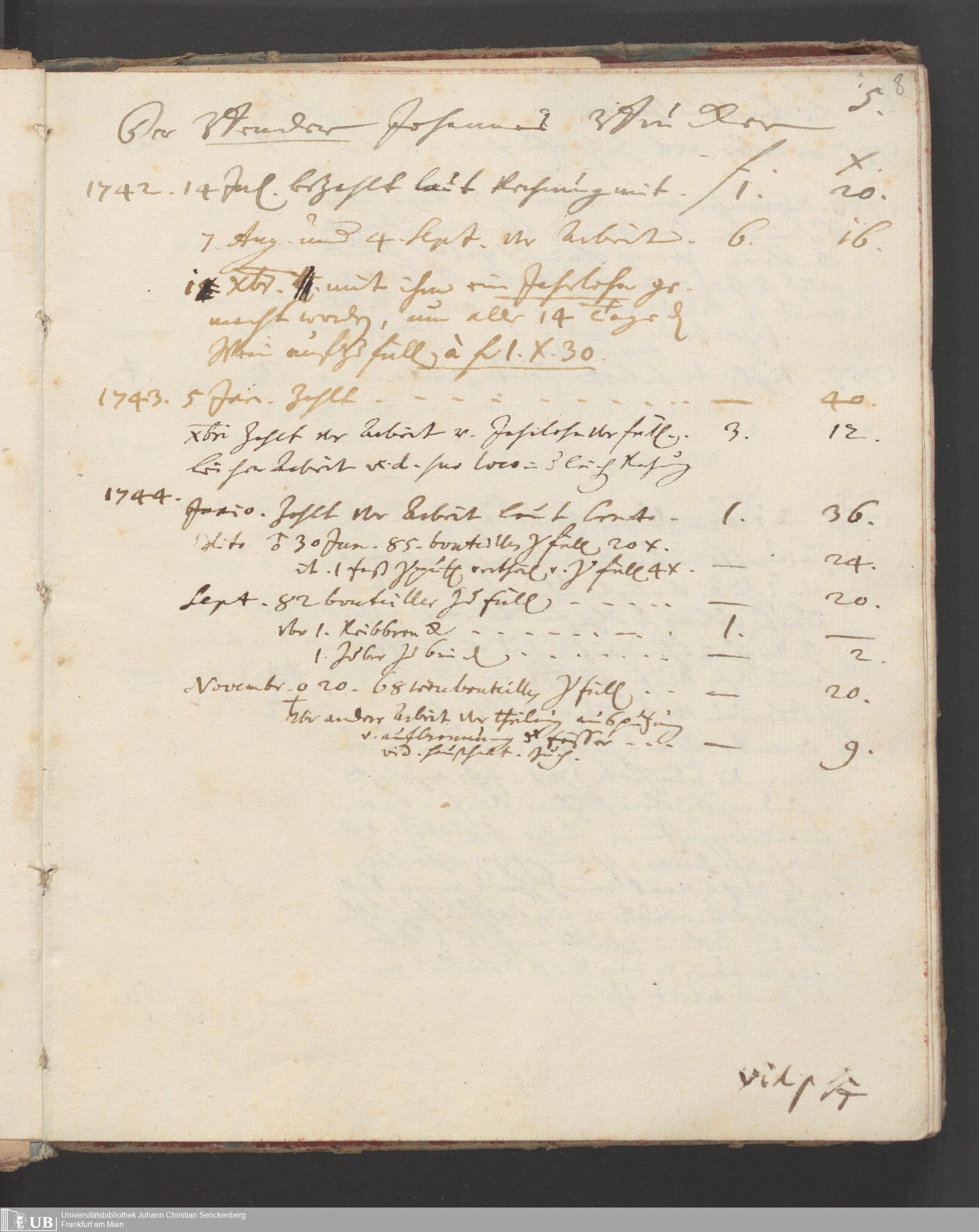 Na 31 Nachlass Johann Christian Senckenberg, 445 - Ausgabenbuch