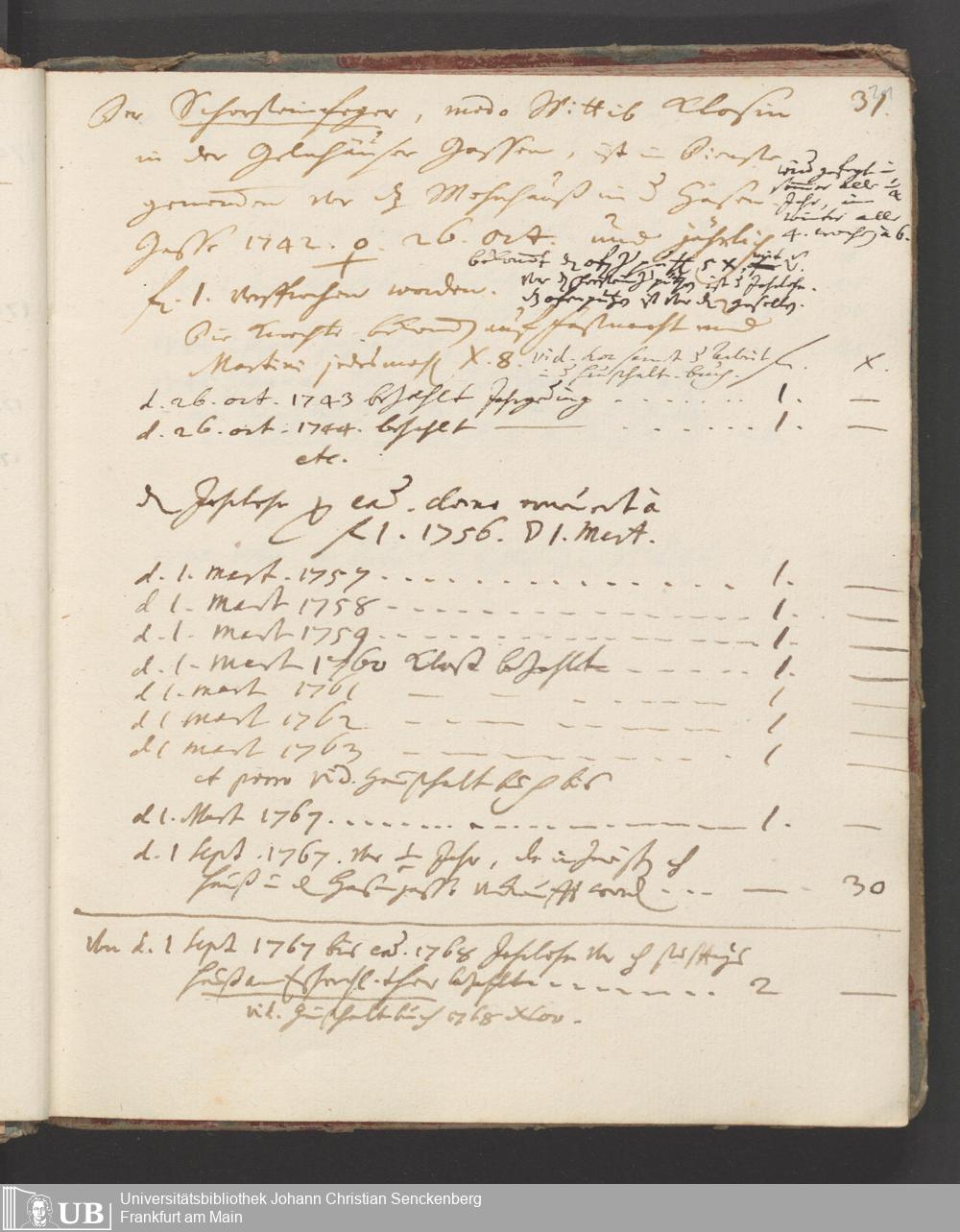 Na 31 Nachlass Johann Christian Senckenberg, 445 - Ausgabenbuch