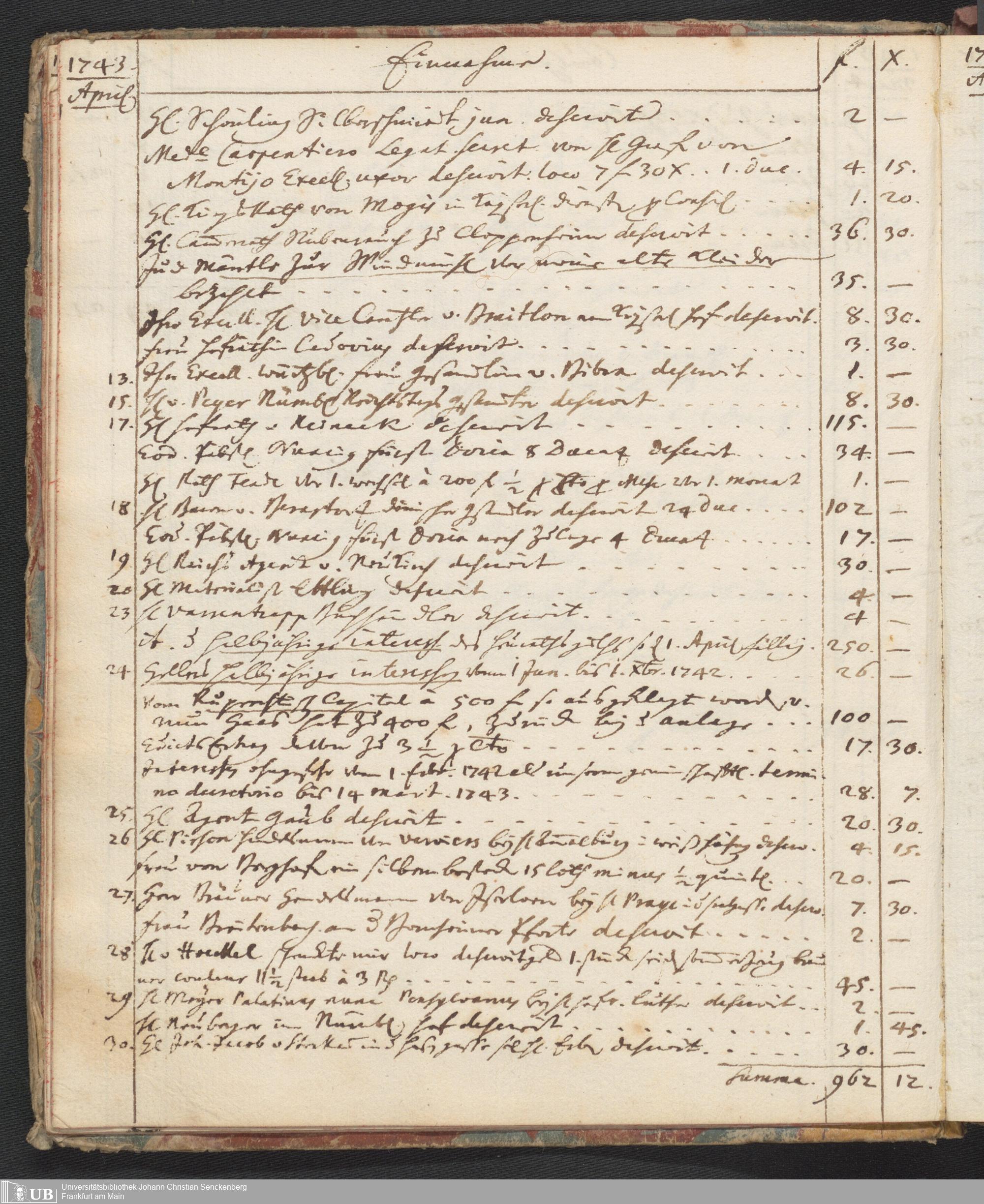 Na 31 Nachlass Johann Christian Senckenberg, 446 - Einnahme- und Ausgabenbuch