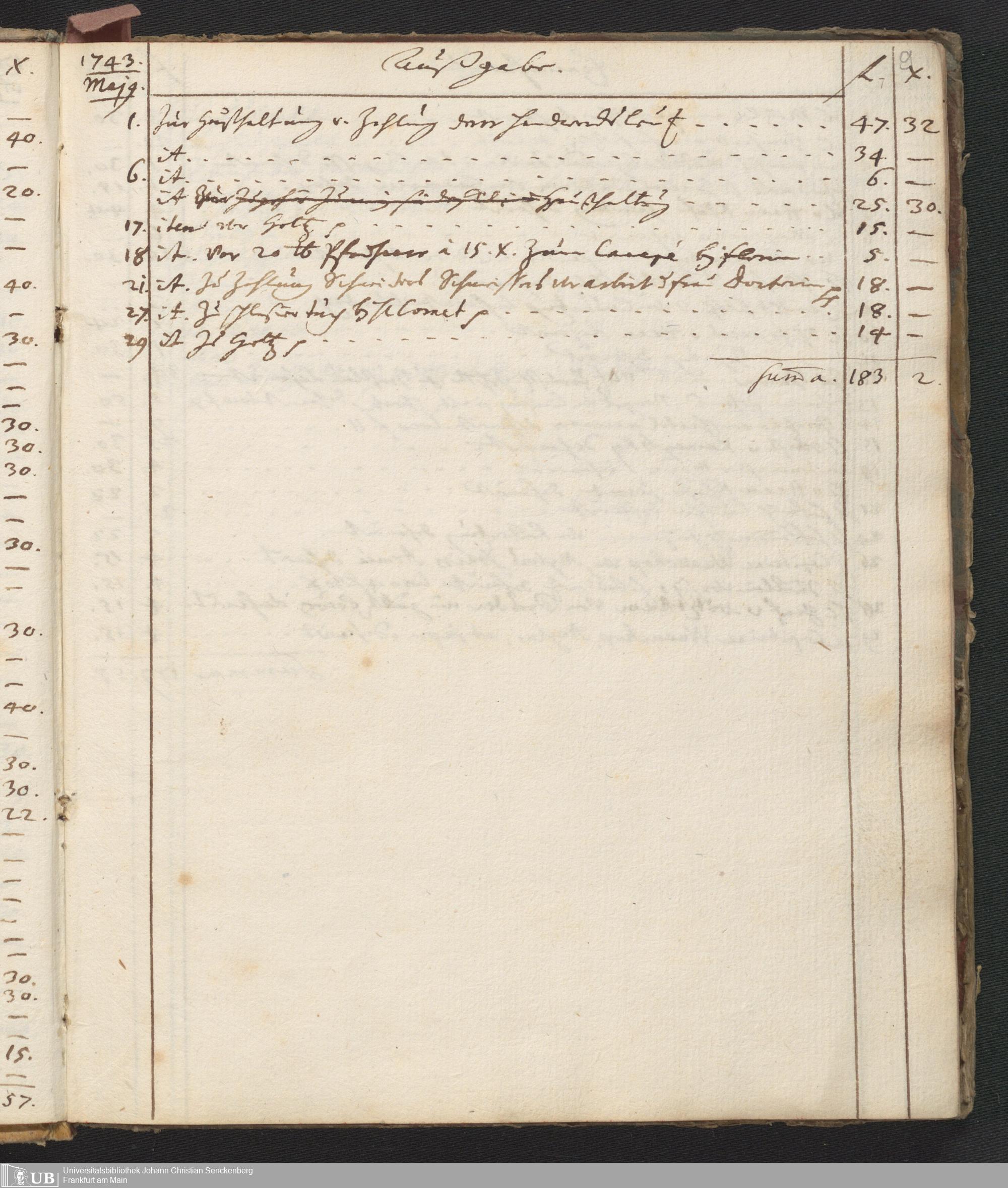Na 31 Nachlass Johann Christian Senckenberg, 446 - Einnahme- und Ausgabenbuch