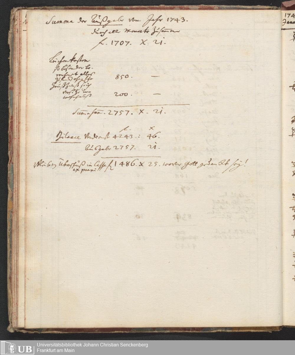 Na 31 Nachlass Johann Christian Senckenberg, 446 - Einnahme- und Ausgabenbuch