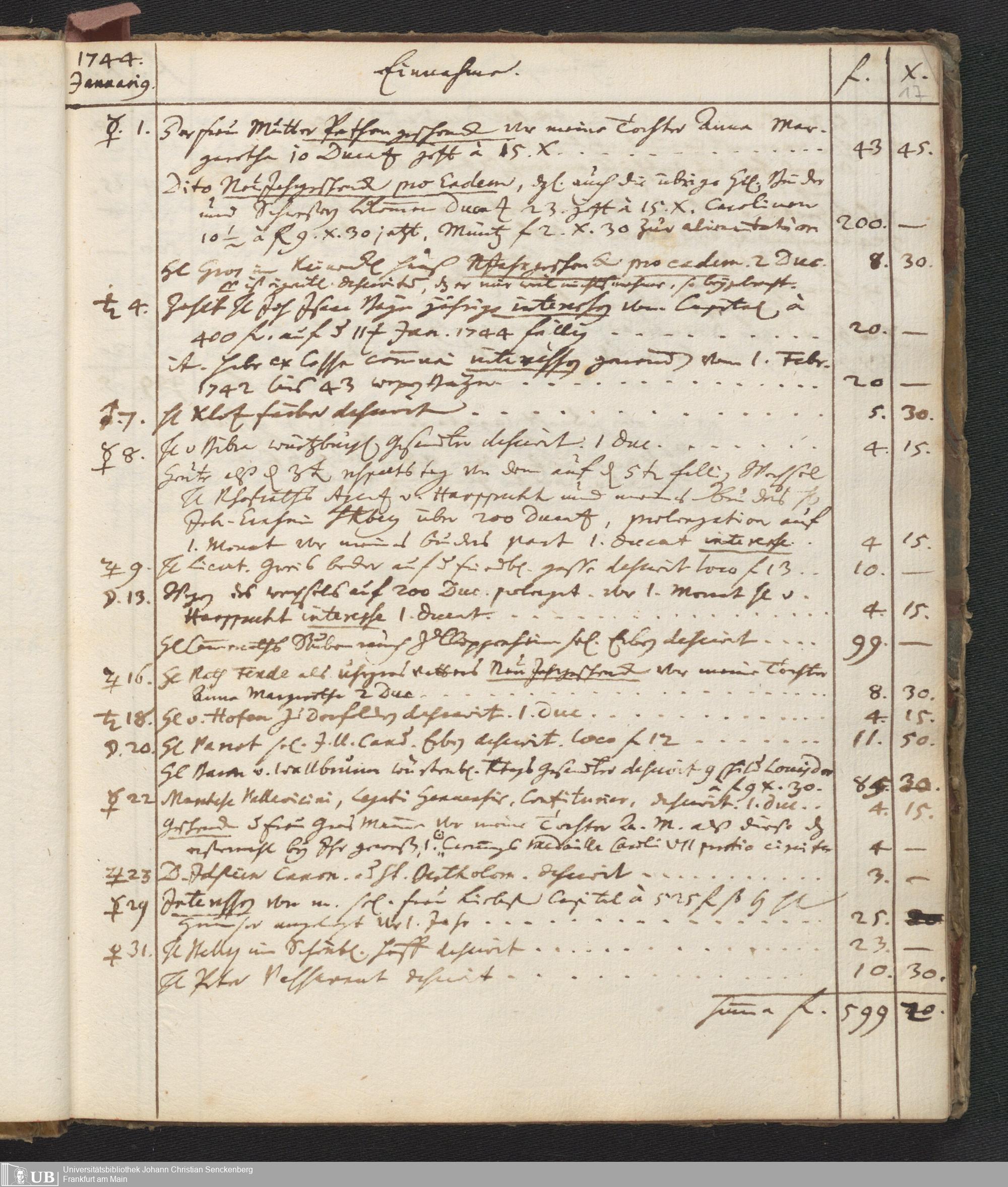 Na 31 Nachlass Johann Christian Senckenberg, 446 - Einnahme- und Ausgabenbuch