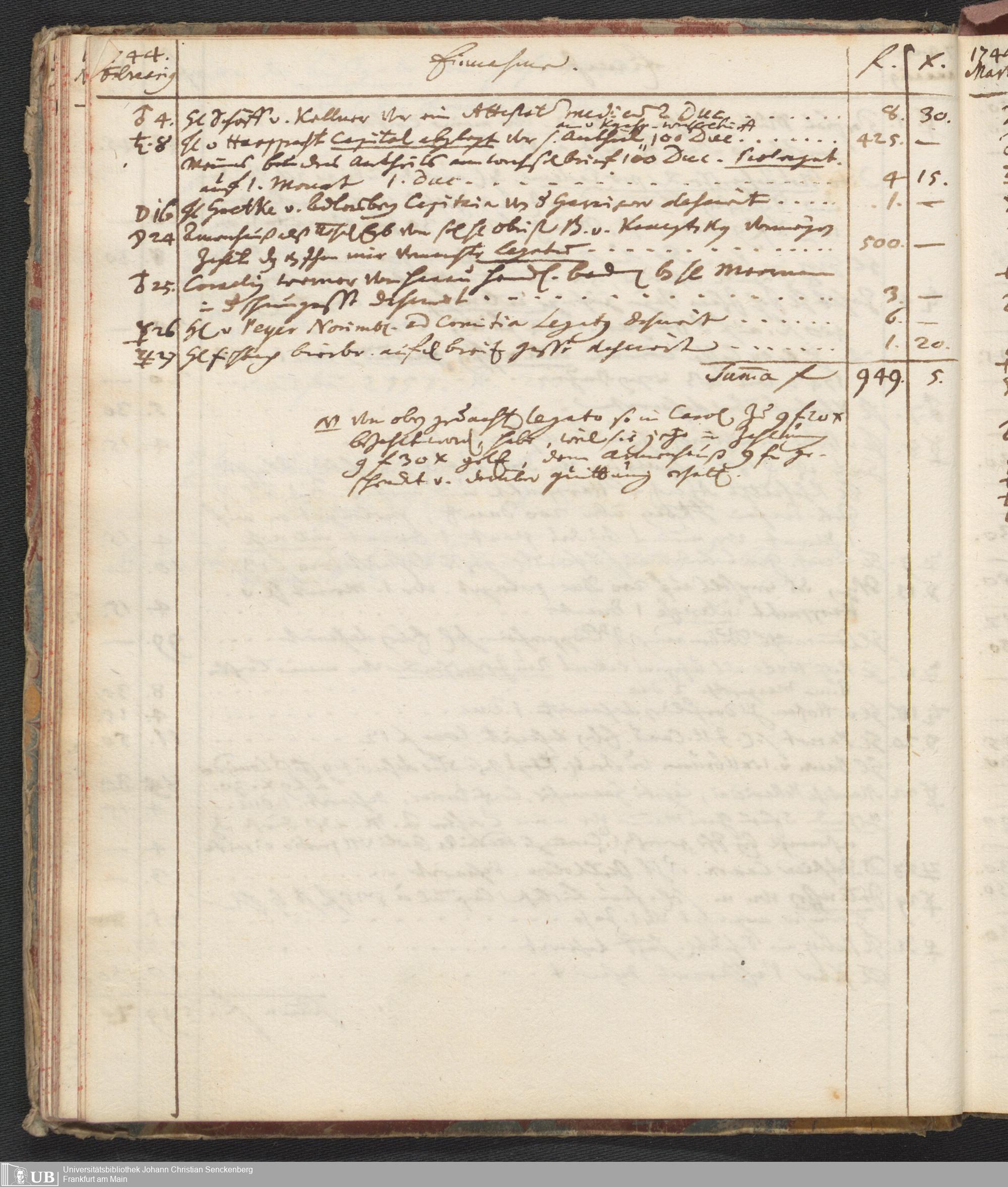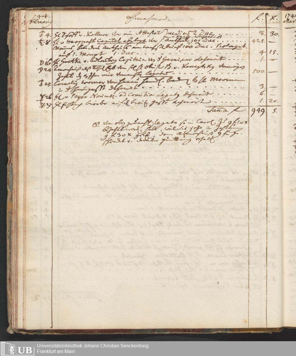 Na 31 Nachlass Johann Christian Senckenberg, 446 - Einnahme- und Ausgabenbuch