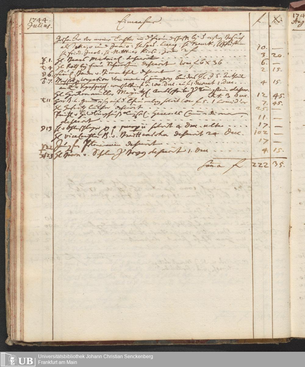 Na 31 Nachlass Johann Christian Senckenberg, 446 - Einnahme- und Ausgabenbuch