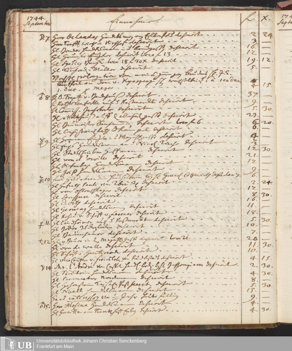 Na 31 Nachlass Johann Christian Senckenberg, 446 - Einnahme- und Ausgabenbuch