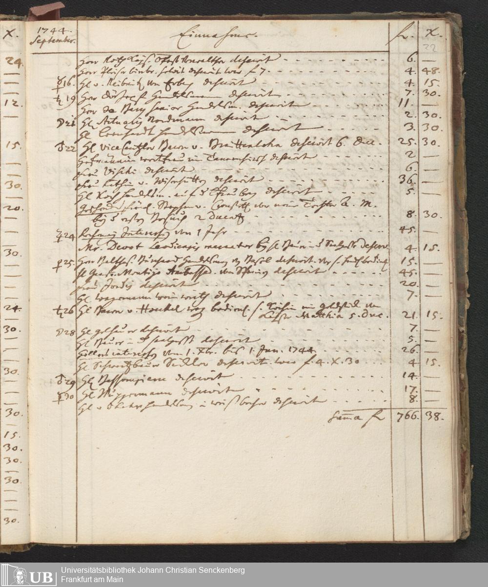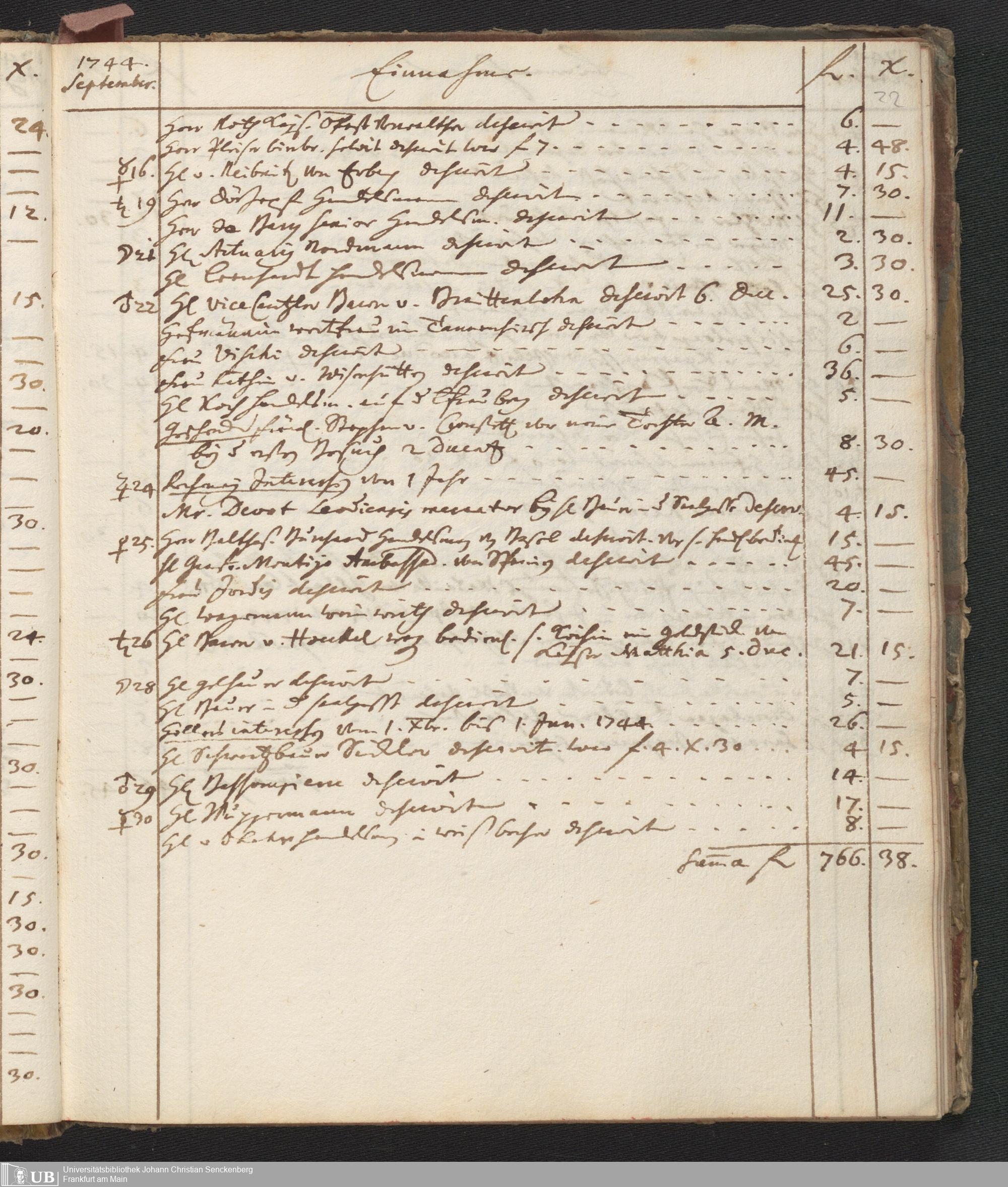 Na 31 Nachlass Johann Christian Senckenberg, 446 - Einnahme- und Ausgabenbuch