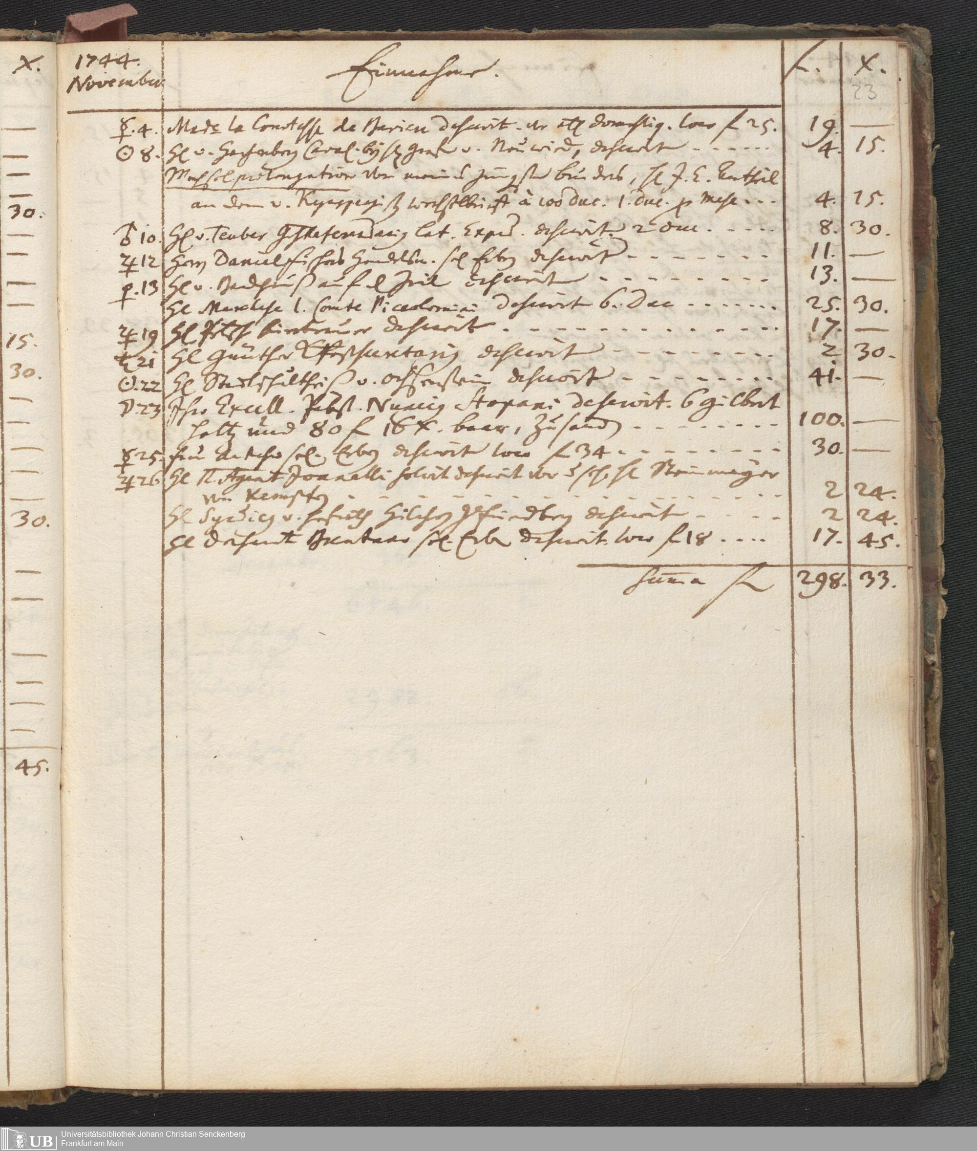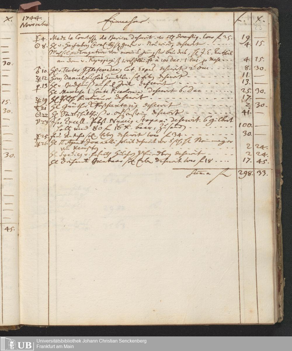 Na 31 Nachlass Johann Christian Senckenberg, 446 - Einnahme- und Ausgabenbuch