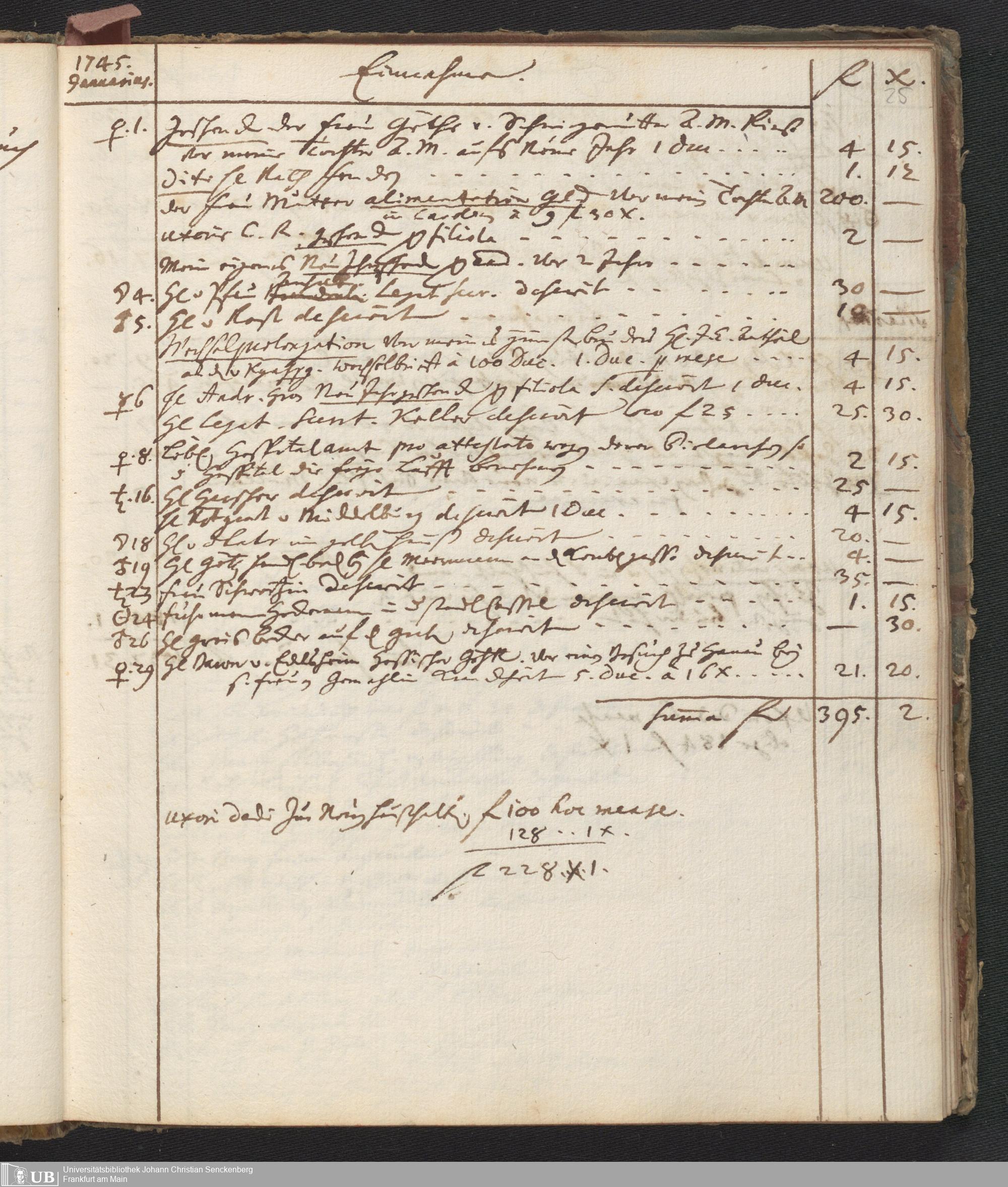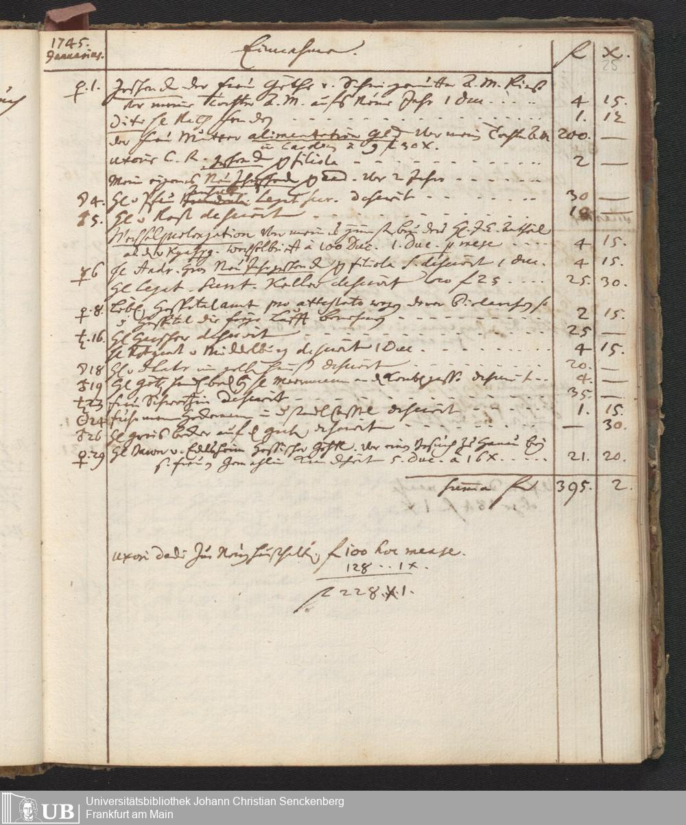 Na 31 Nachlass Johann Christian Senckenberg, 446 - Einnahme- und Ausgabenbuch