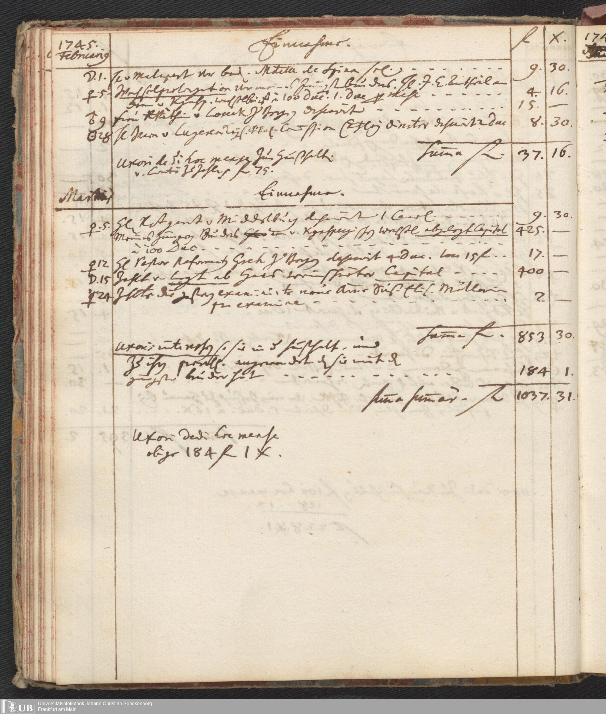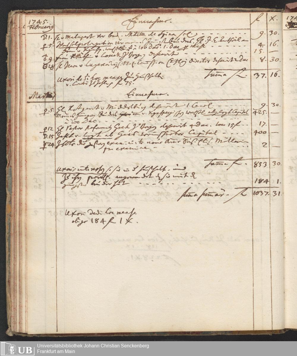 Na 31 Nachlass Johann Christian Senckenberg, 446 - Einnahme- und Ausgabenbuch