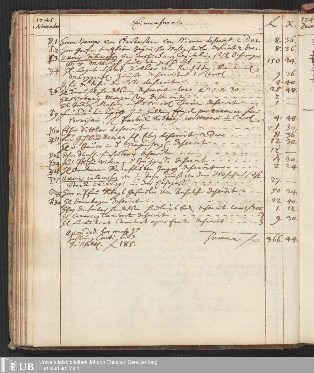 Na 31 Nachlass Johann Christian Senckenberg, 446 - Einnahme- und Ausgabenbuch