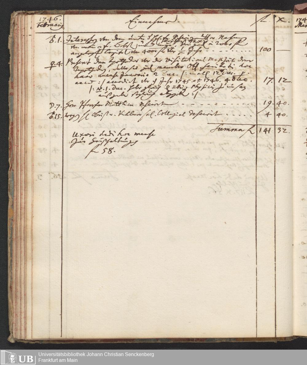 Na 31 Nachlass Johann Christian Senckenberg, 446 - Einnahme- und Ausgabenbuch