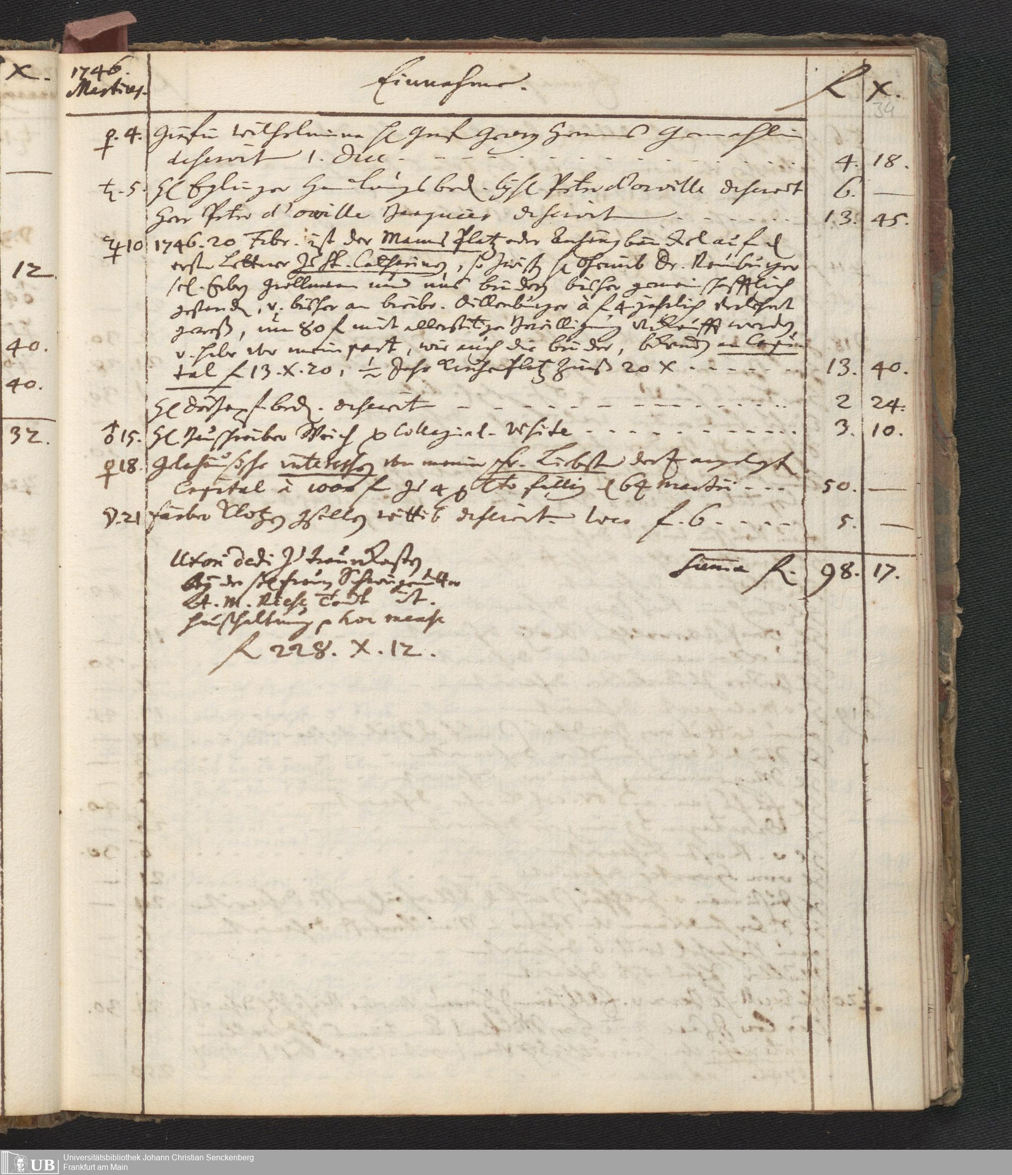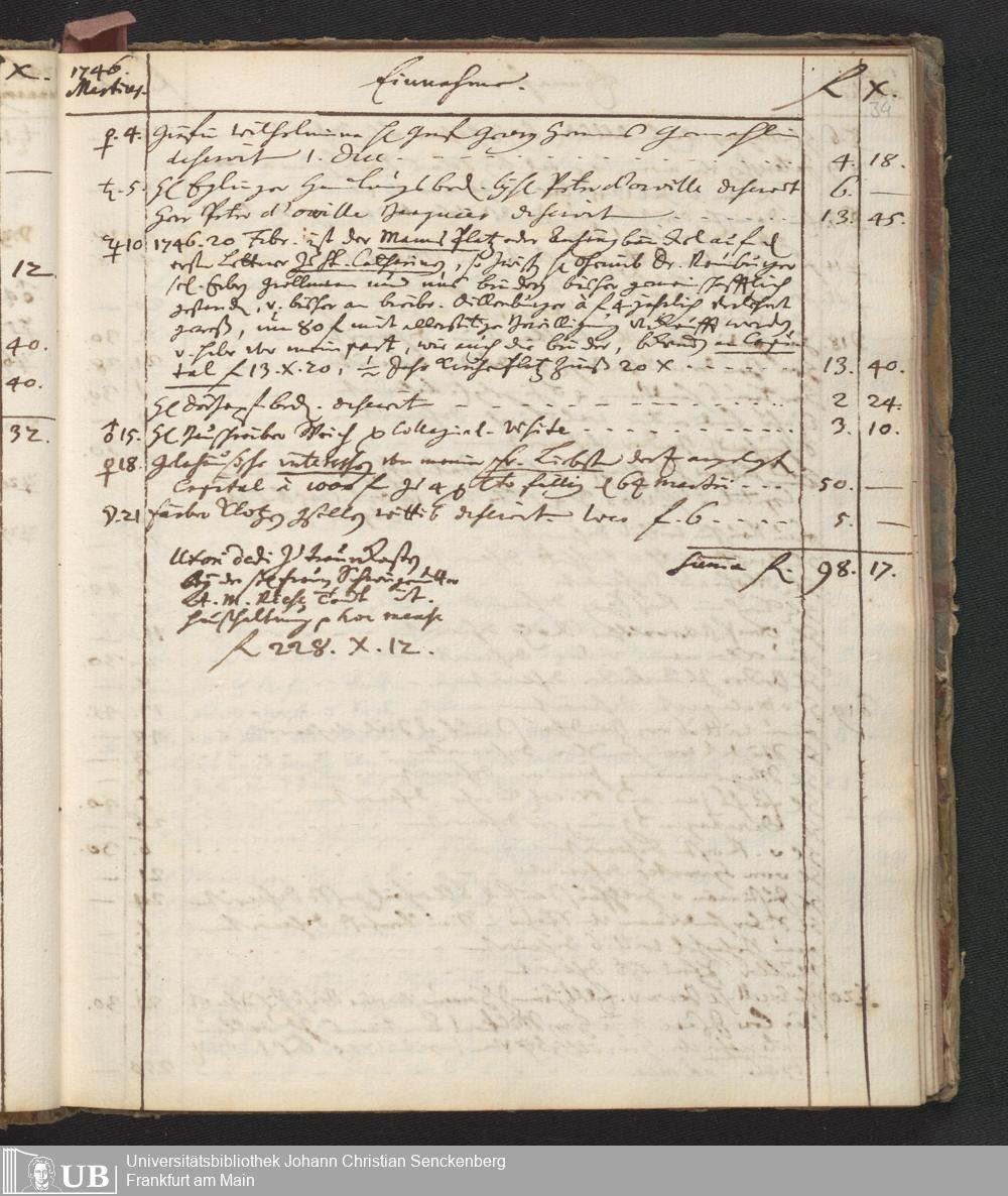 Na 31 Nachlass Johann Christian Senckenberg, 446 - Einnahme- und Ausgabenbuch