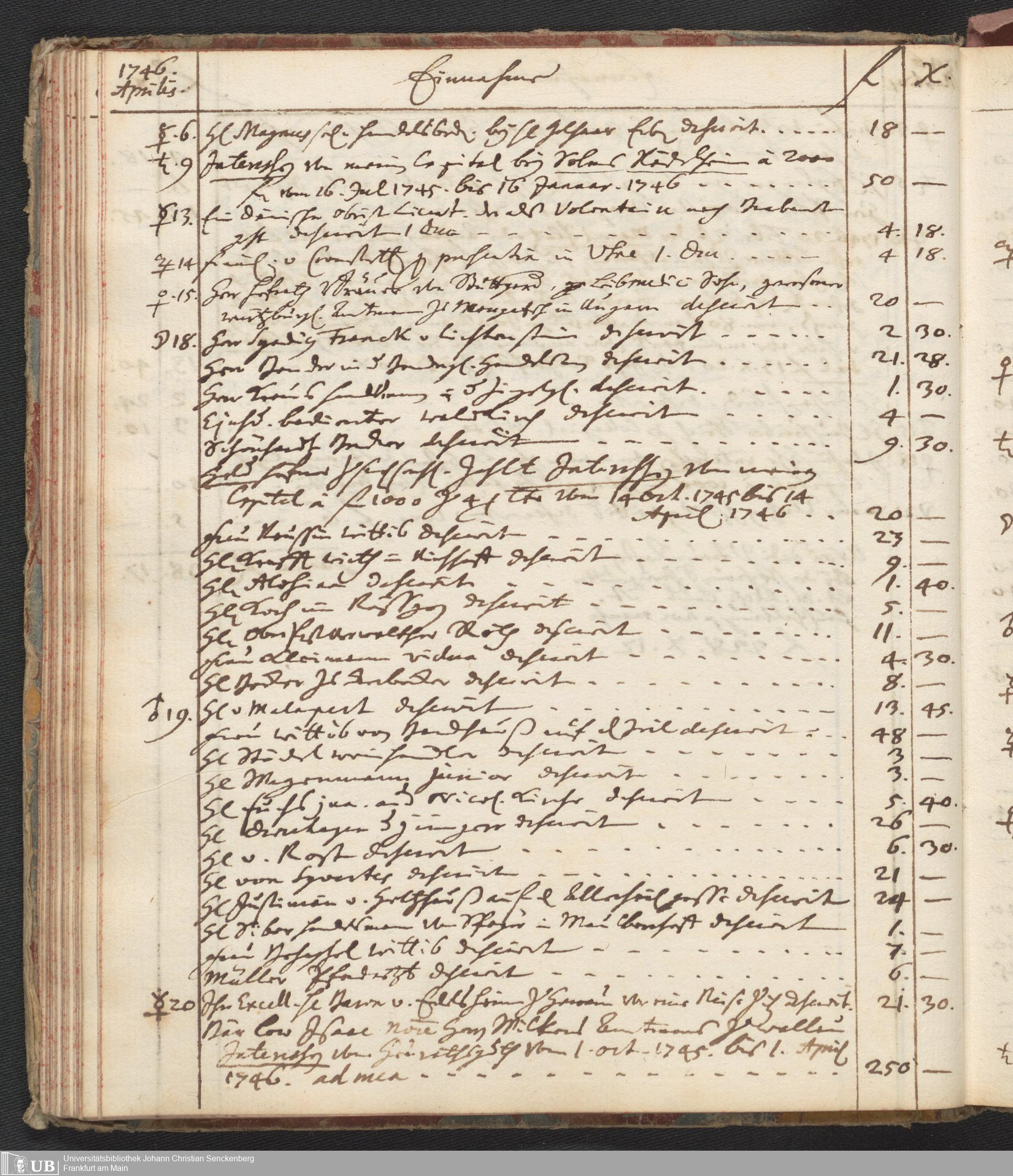 Na 31 Nachlass Johann Christian Senckenberg, 446 - Einnahme- und Ausgabenbuch