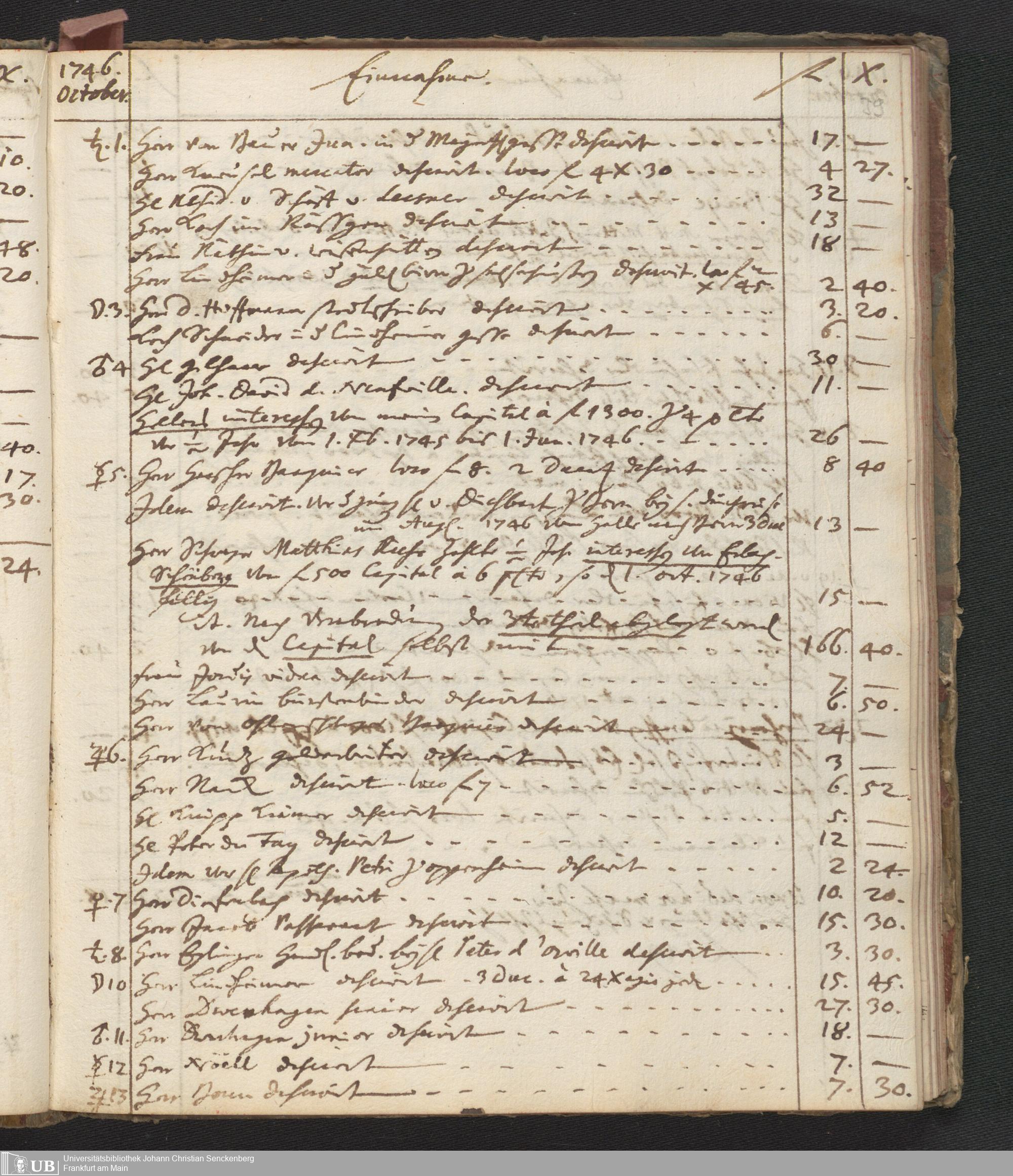 Na 31 Nachlass Johann Christian Senckenberg, 446 - Einnahme- und Ausgabenbuch