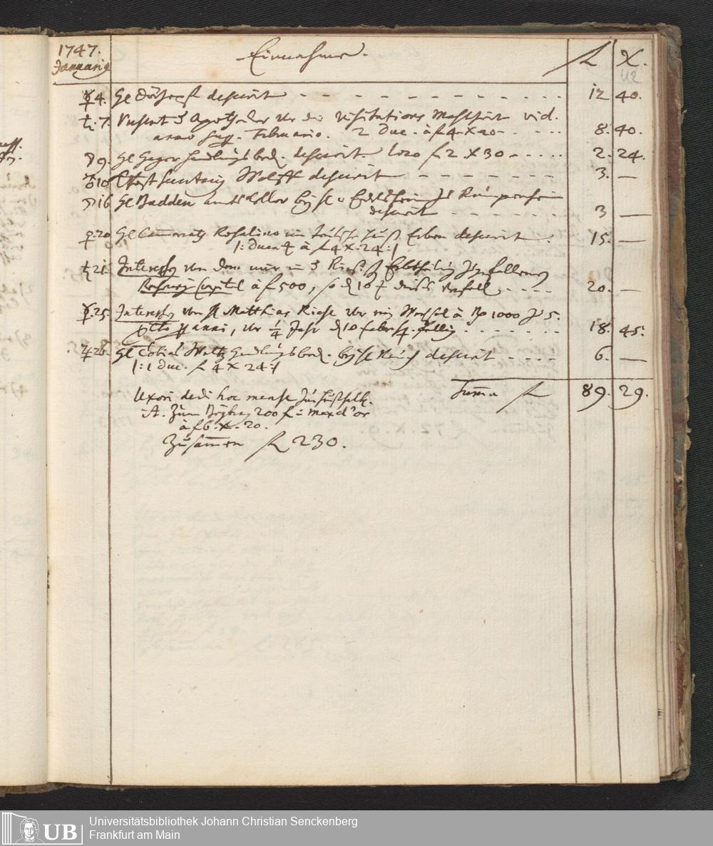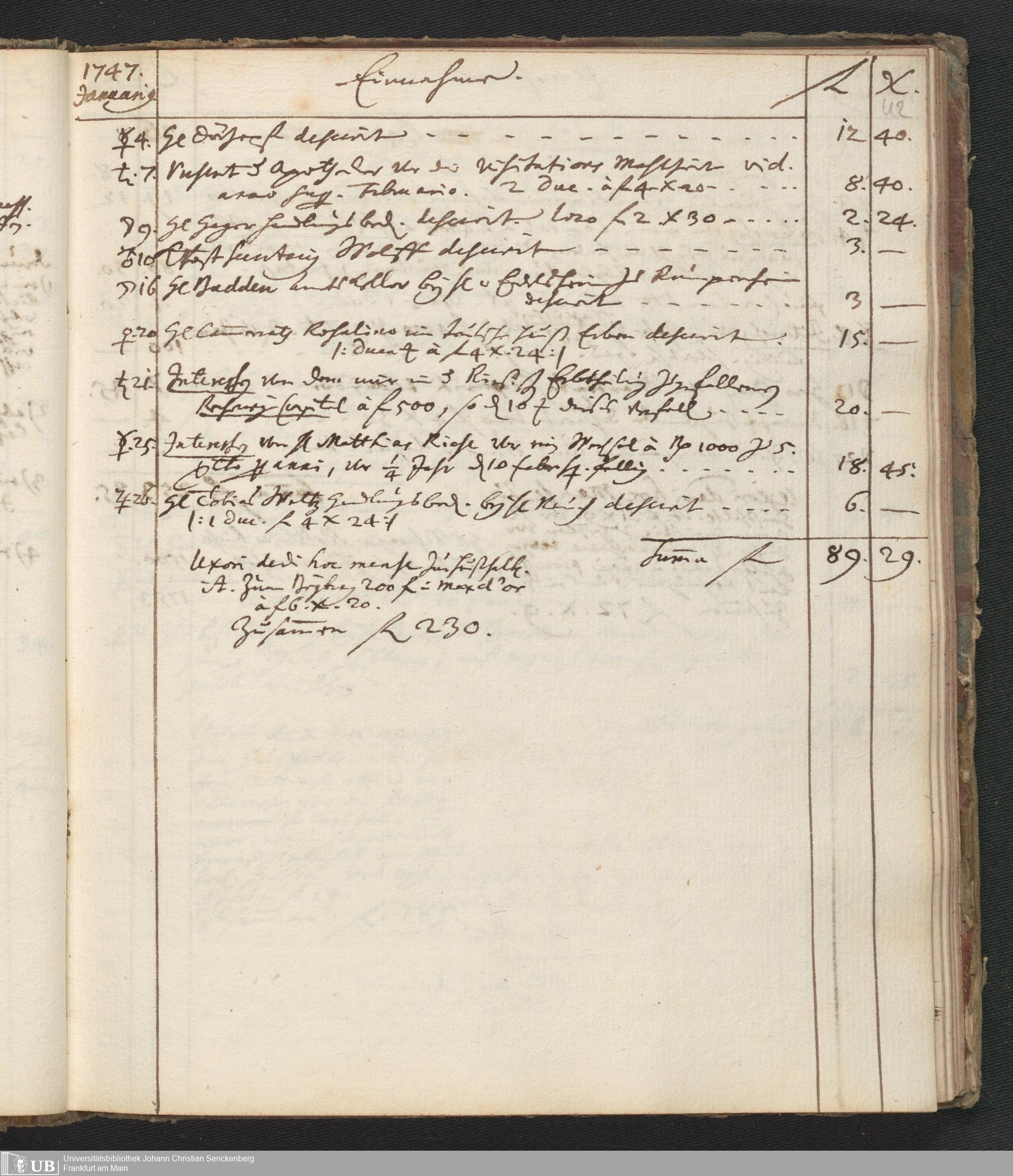 Na 31 Nachlass Johann Christian Senckenberg, 446 - Einnahme- und Ausgabenbuch