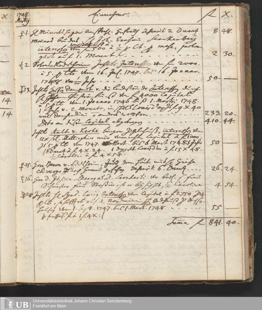 Na 31 Nachlass Johann Christian Senckenberg, 446 - Einnahme- und Ausgabenbuch