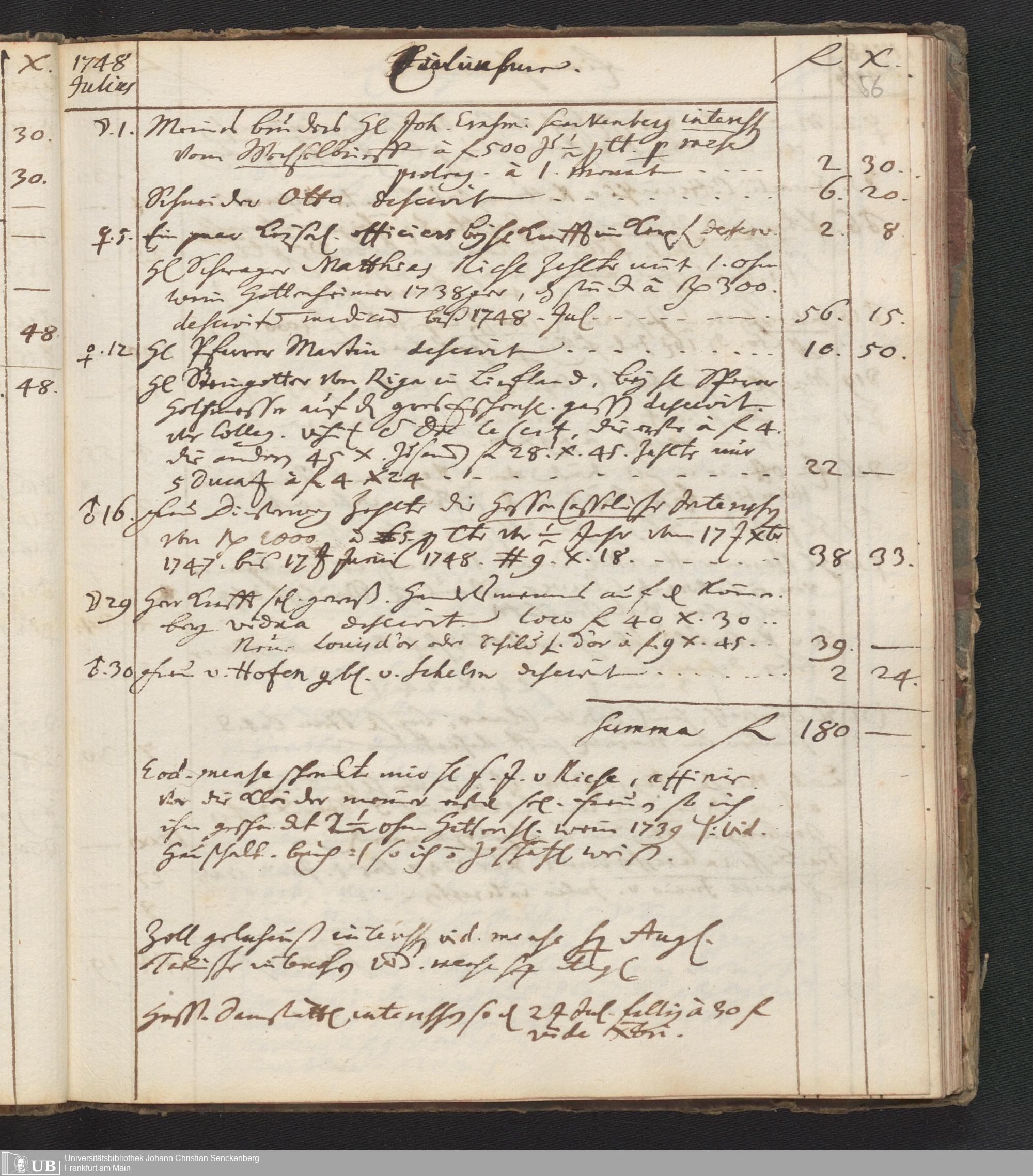Na 31 Nachlass Johann Christian Senckenberg, 446 - Einnahme- und Ausgabenbuch