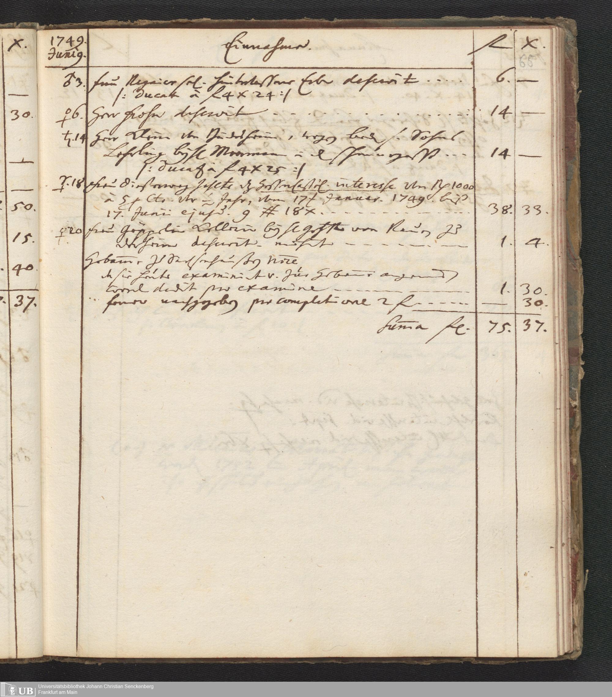 Na 31 Nachlass Johann Christian Senckenberg, 446 - Einnahme- und Ausgabenbuch