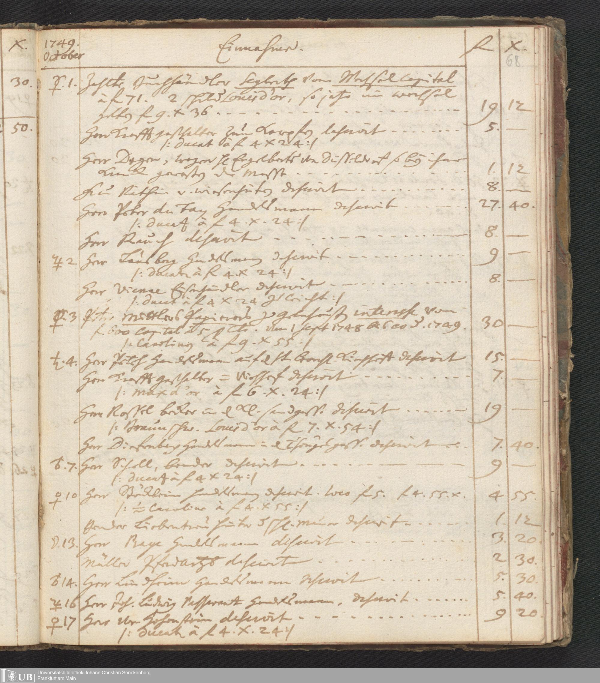 Na 31 Nachlass Johann Christian Senckenberg, 446 - Einnahme- und Ausgabenbuch