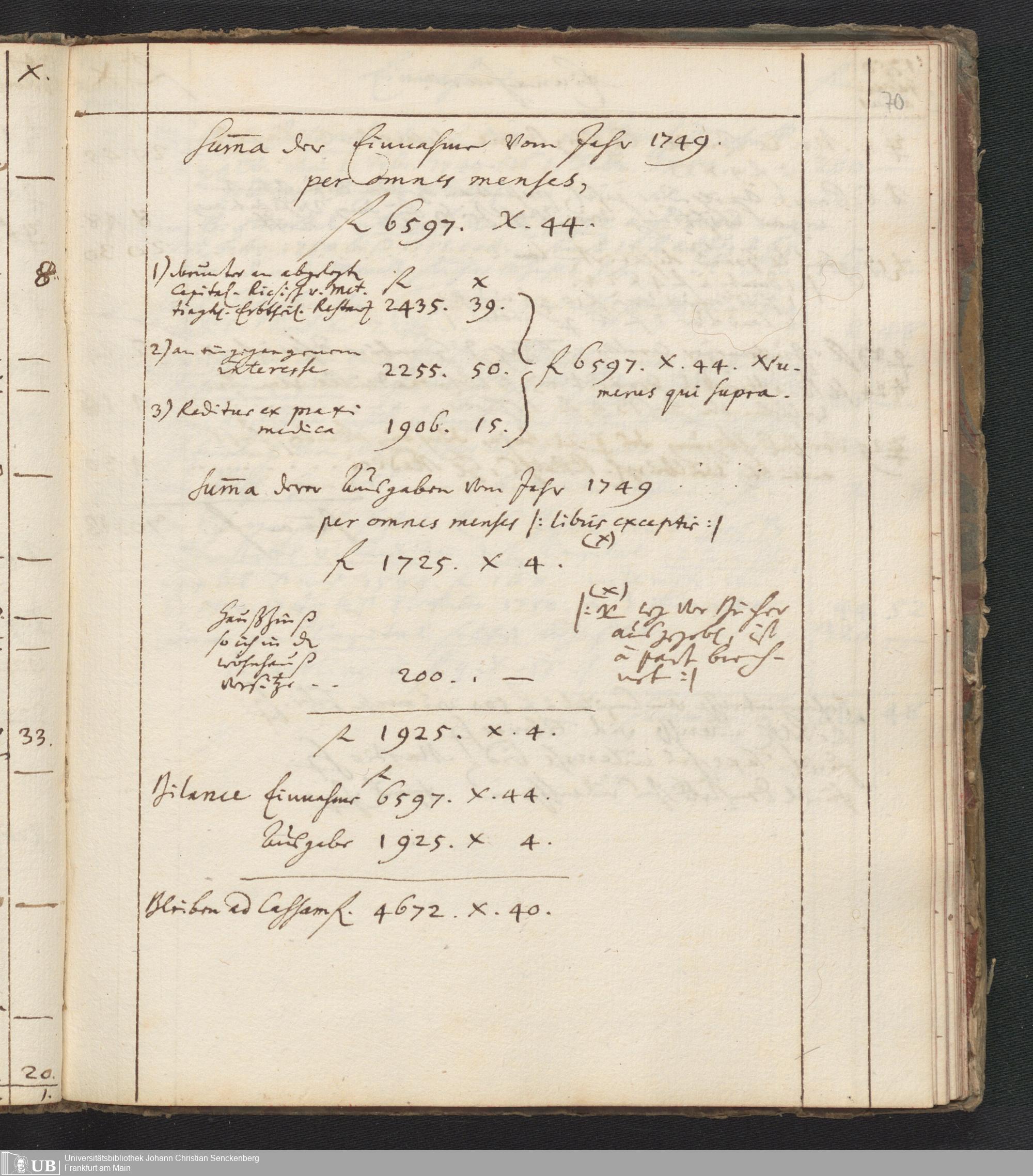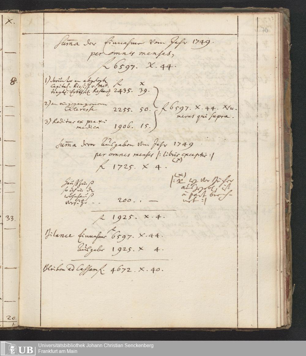 Na 31 Nachlass Johann Christian Senckenberg, 446 - Einnahme- und Ausgabenbuch