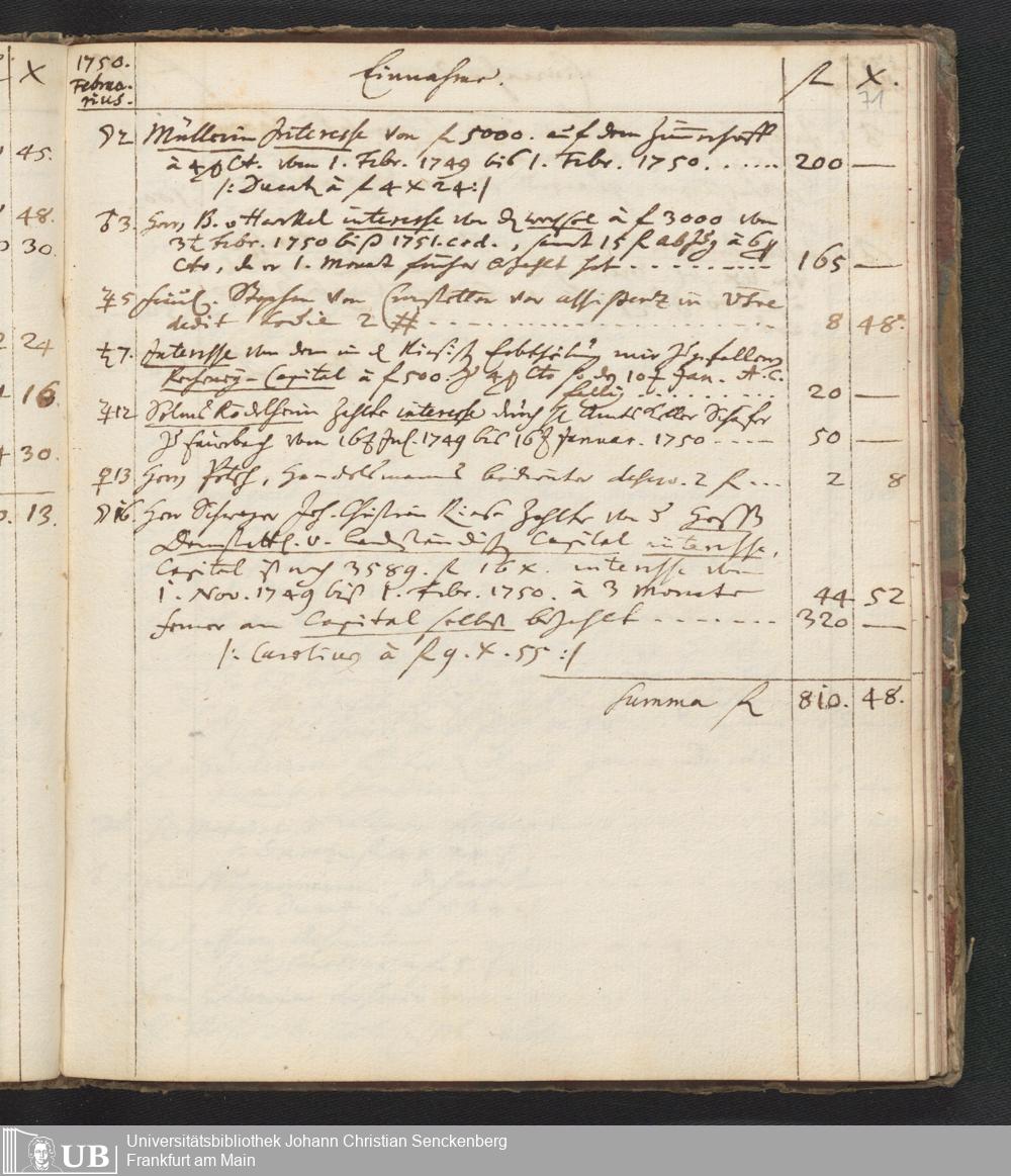 Na 31 Nachlass Johann Christian Senckenberg, 446 - Einnahme- und Ausgabenbuch