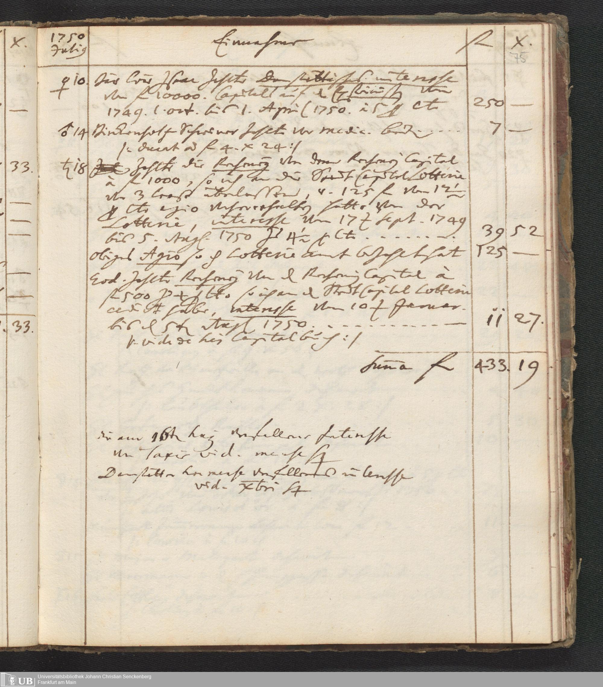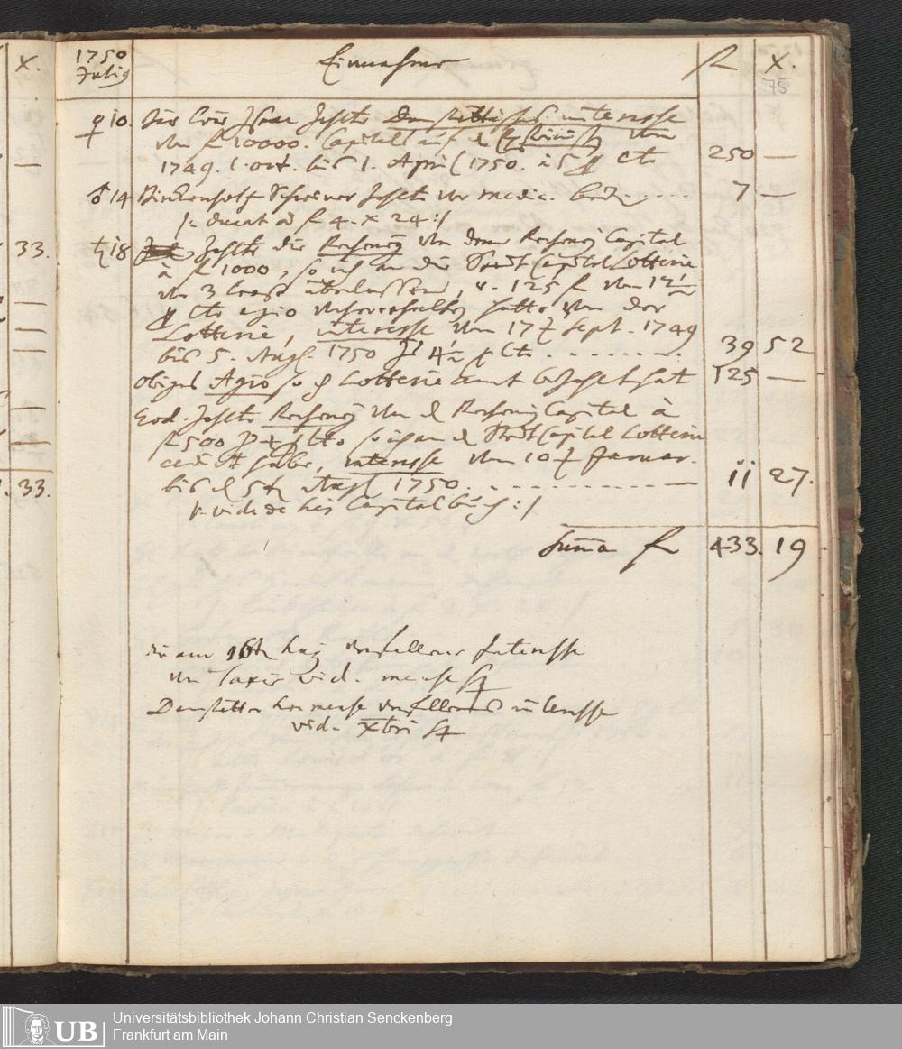 Na 31 Nachlass Johann Christian Senckenberg, 446 - Einnahme- und Ausgabenbuch