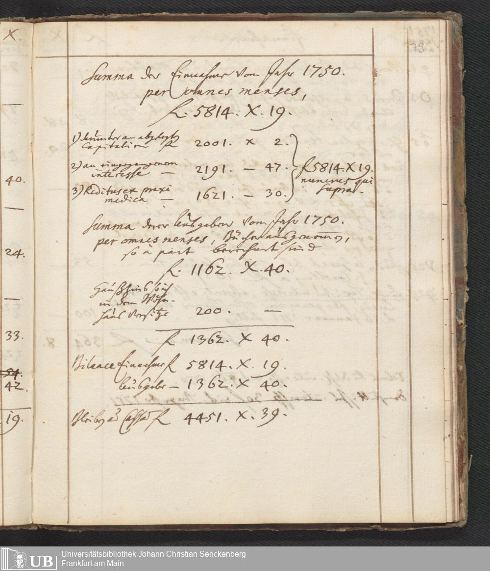 Na 31 Nachlass Johann Christian Senckenberg, 446 - Einnahme- und Ausgabenbuch