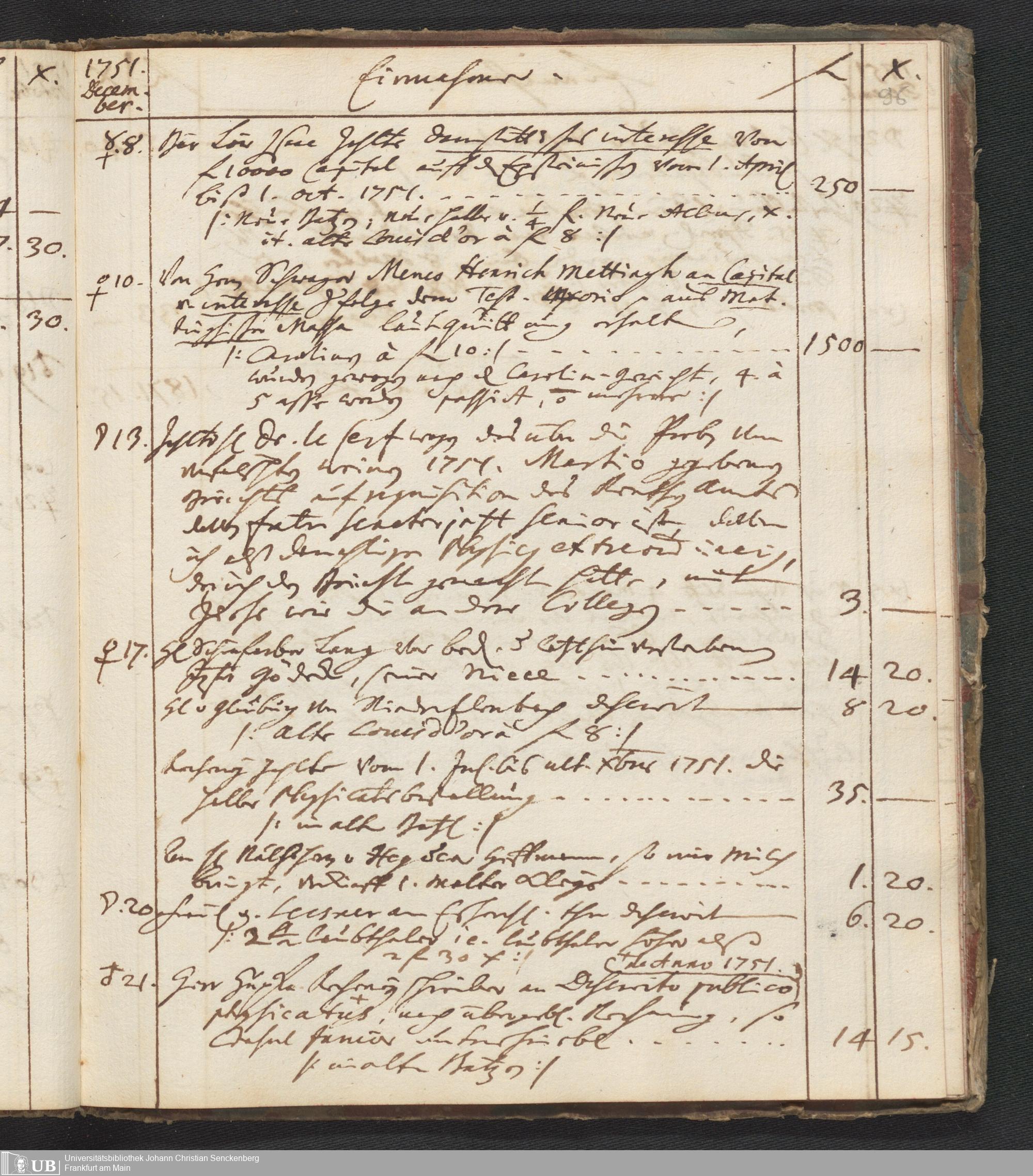 Na 31 Nachlass Johann Christian Senckenberg, 446 - Einnahme- und Ausgabenbuch