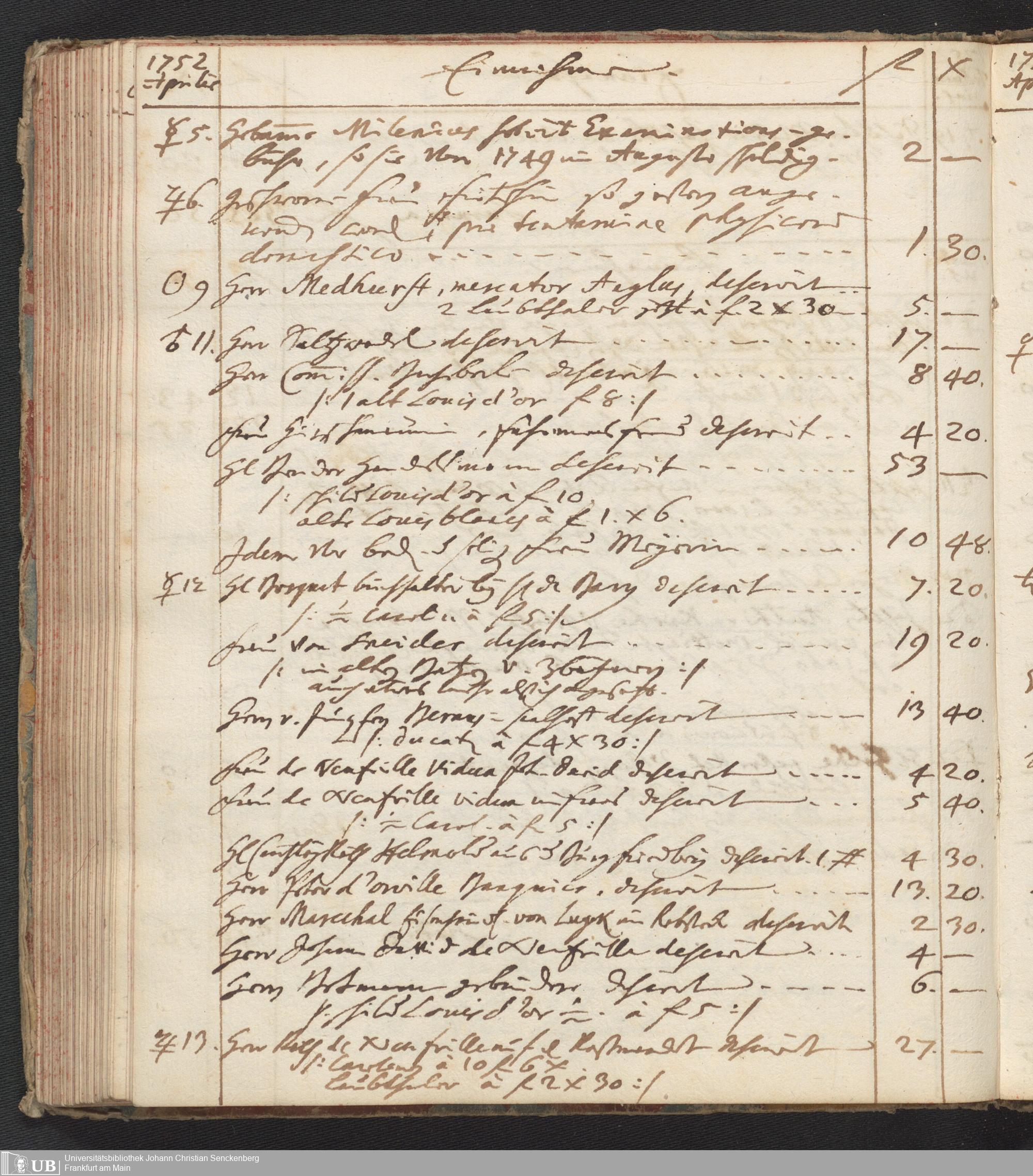 Na 31 Nachlass Johann Christian Senckenberg, 446 - Einnahme- und Ausgabenbuch