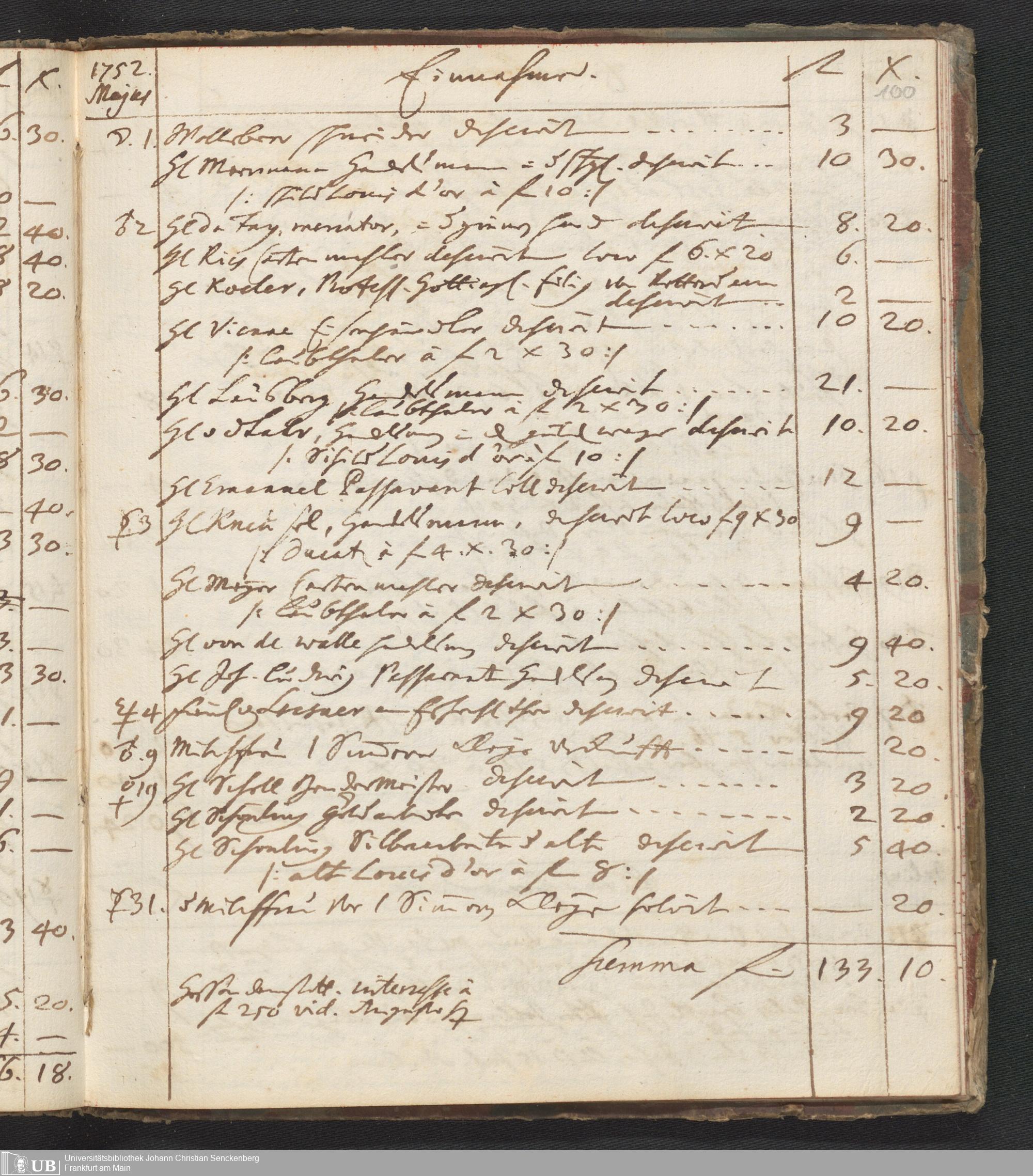 Na 31 Nachlass Johann Christian Senckenberg, 446 - Einnahme- und Ausgabenbuch