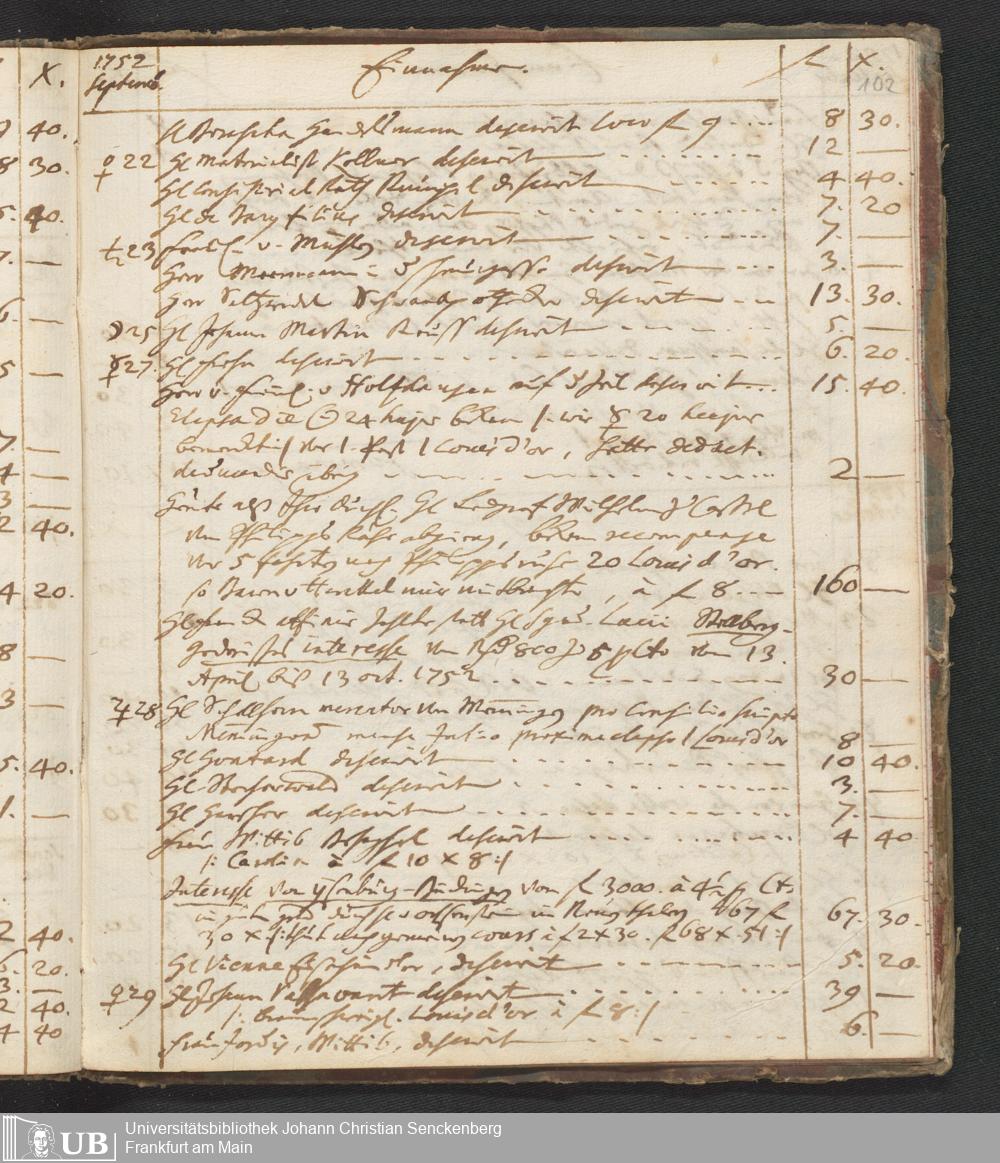 Na 31 Nachlass Johann Christian Senckenberg, 446 - Einnahme- und Ausgabenbuch