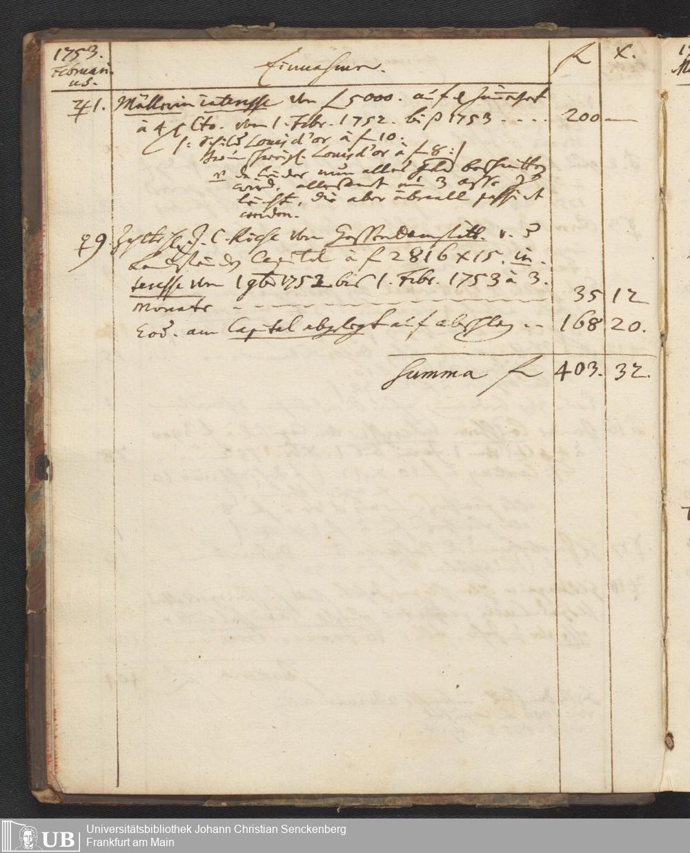 Na 31 Nachlass Johann Christian Senckenberg, 449 - Einnahmebuch