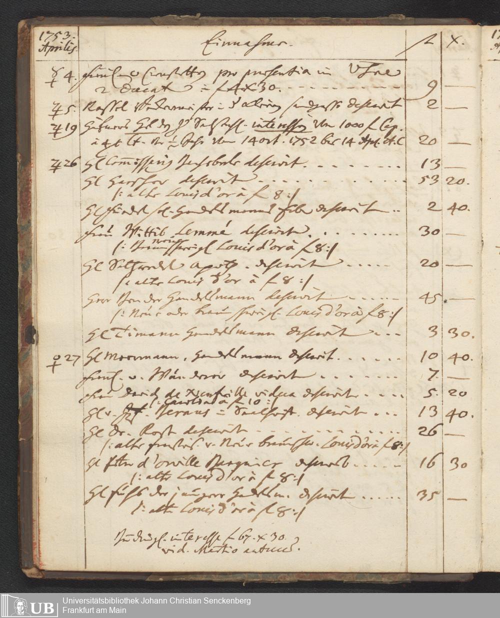 Na 31 Nachlass Johann Christian Senckenberg, 449 - Einnahmebuch