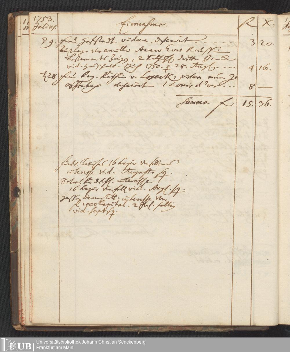 Na 31 Nachlass Johann Christian Senckenberg, 449 - Einnahmebuch