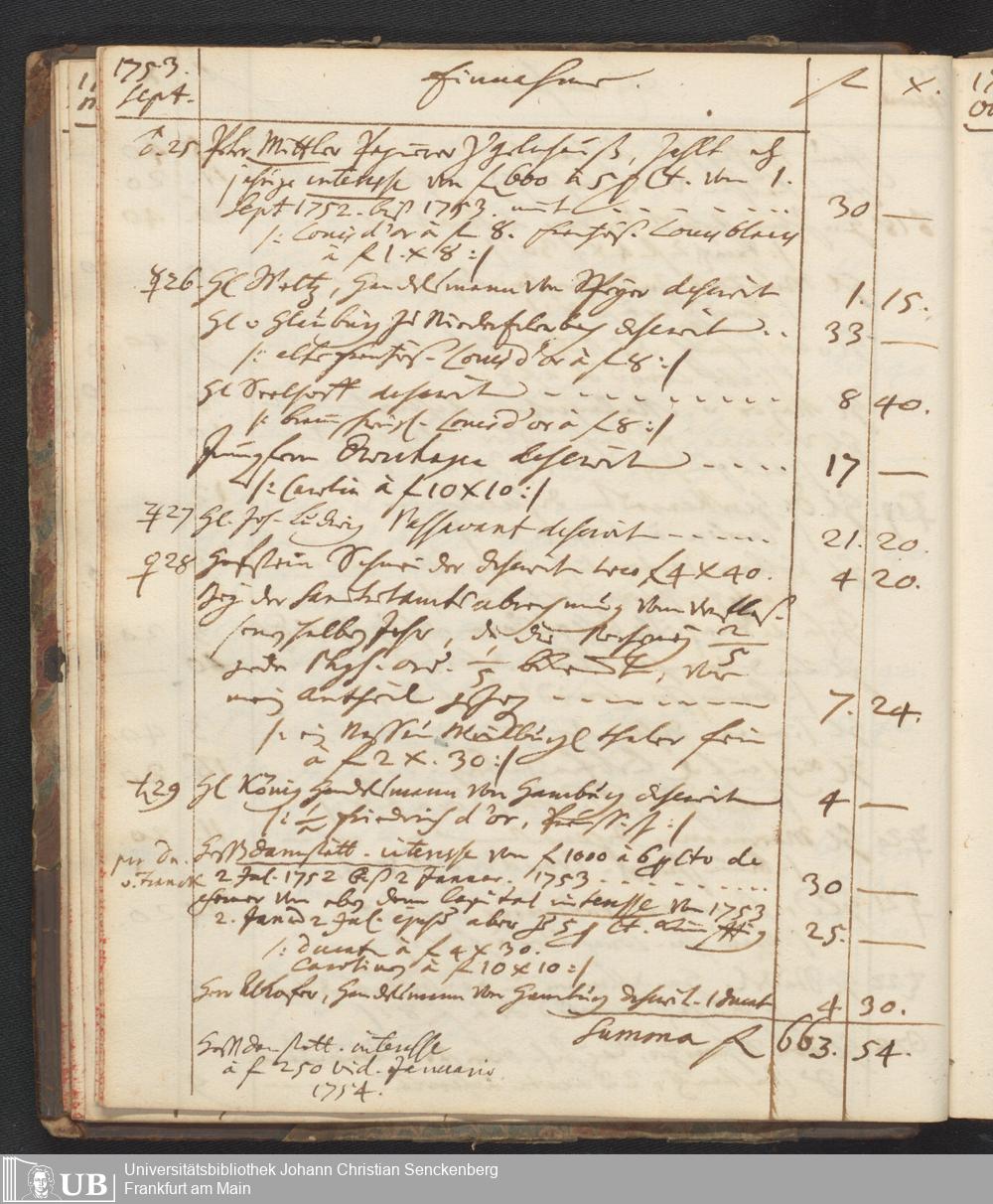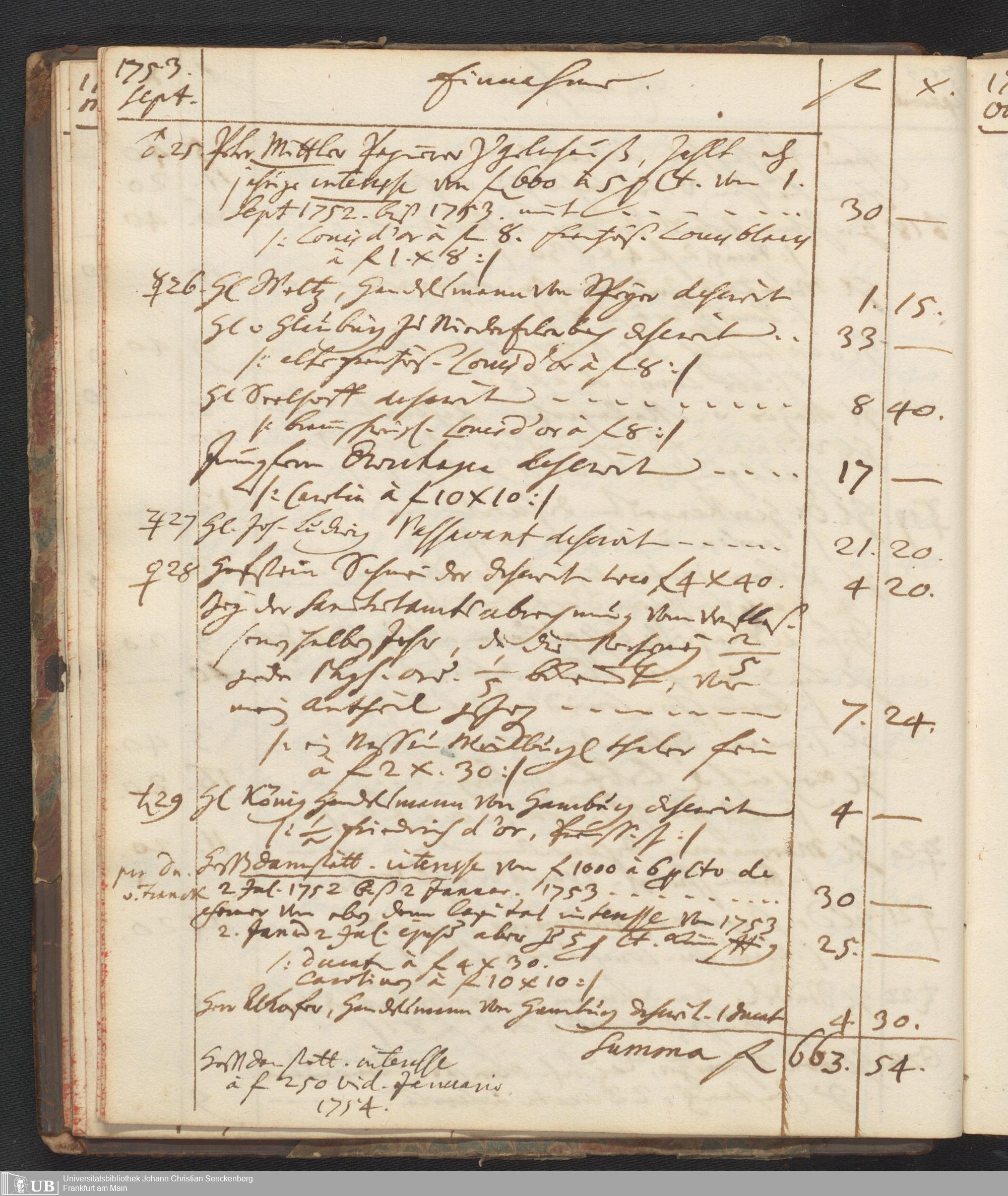 Na 31 Nachlass Johann Christian Senckenberg, 449 - Einnahmebuch