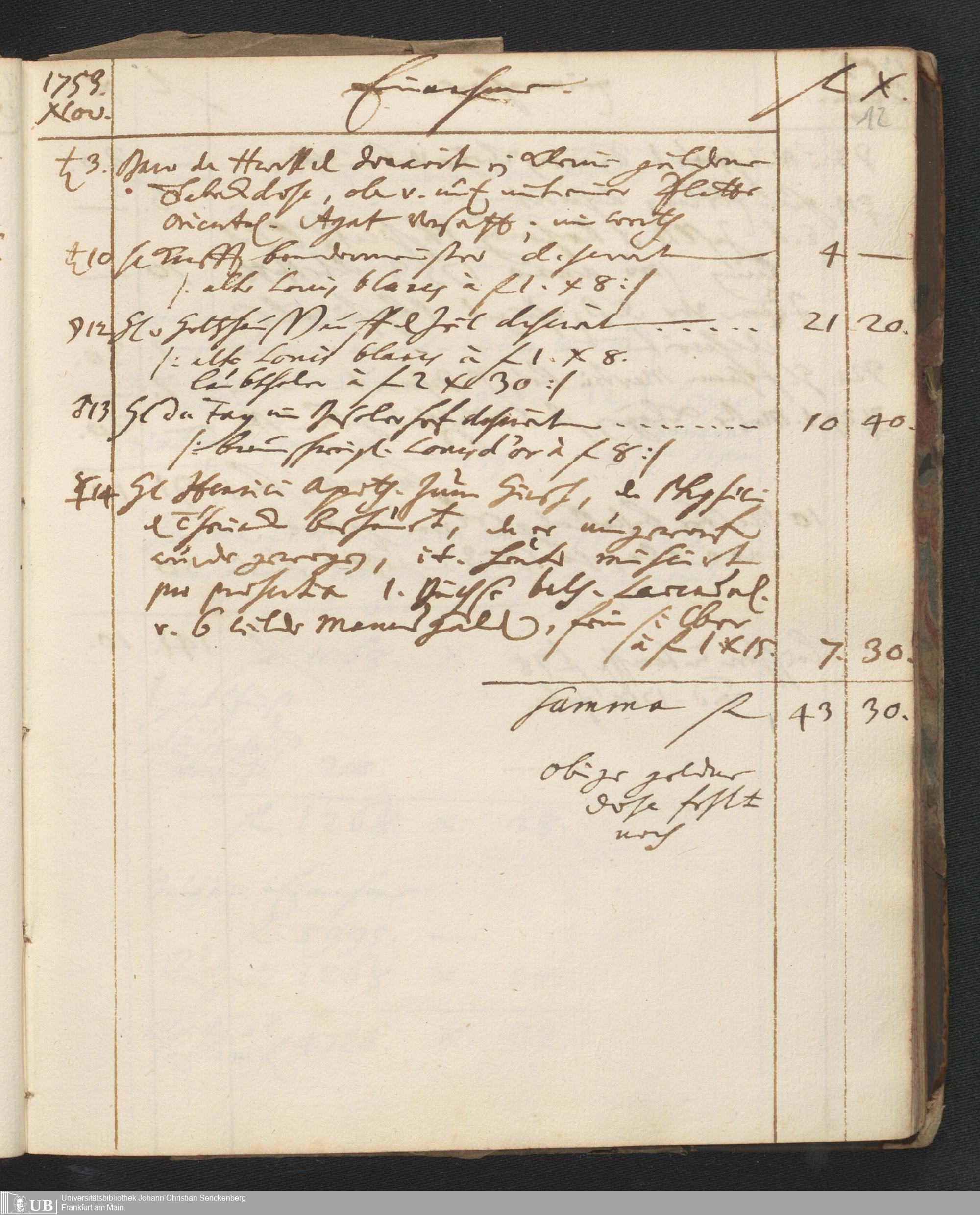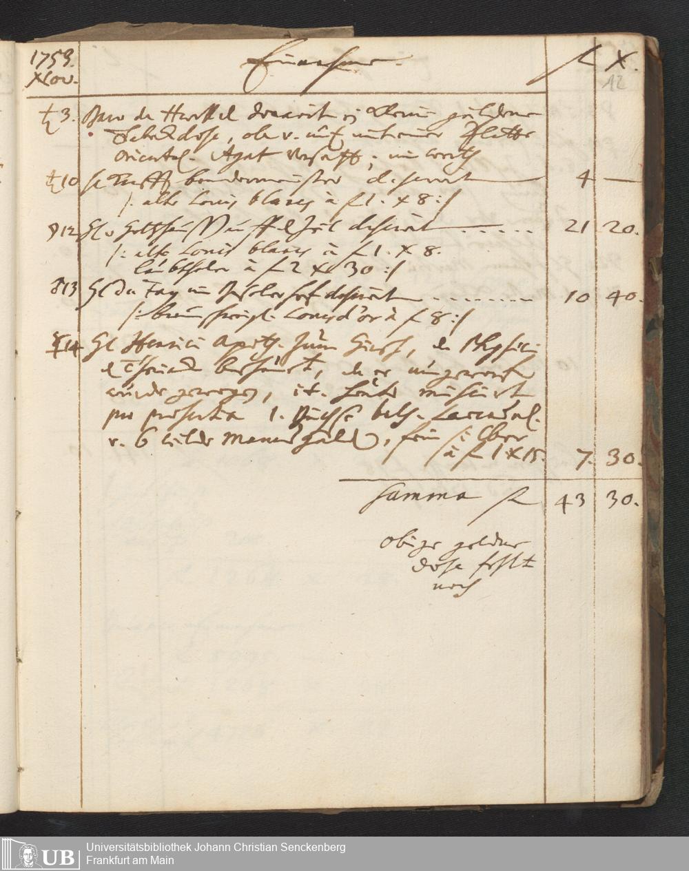 Na 31 Nachlass Johann Christian Senckenberg, 449 - Einnahmebuch