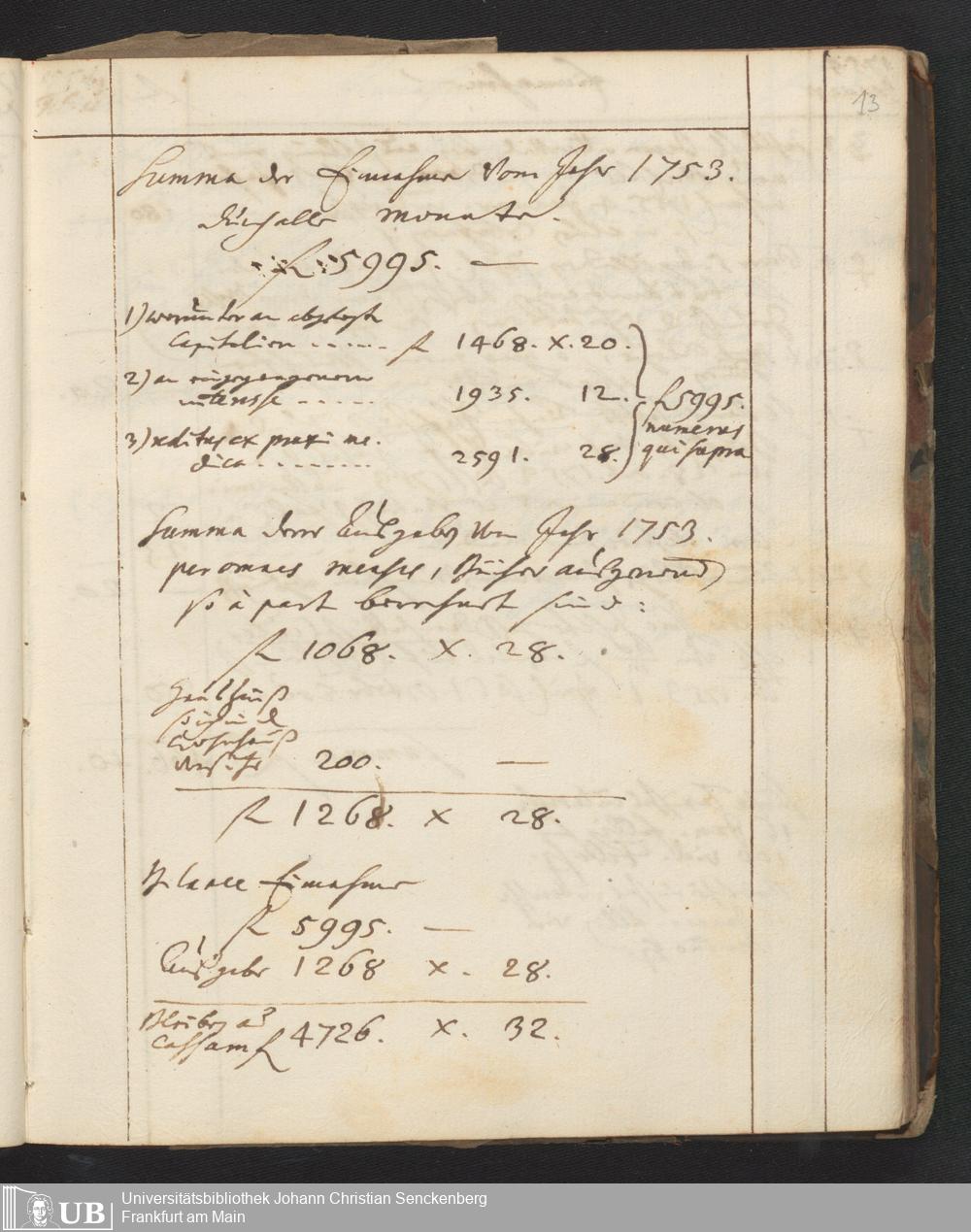 Na 31 Nachlass Johann Christian Senckenberg, 449 - Einnahmebuch