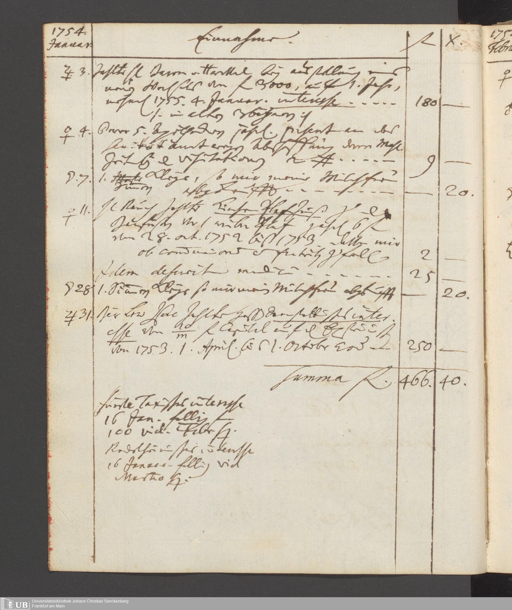 Na 31 Nachlass Johann Christian Senckenberg, 449 - Einnahmebuch