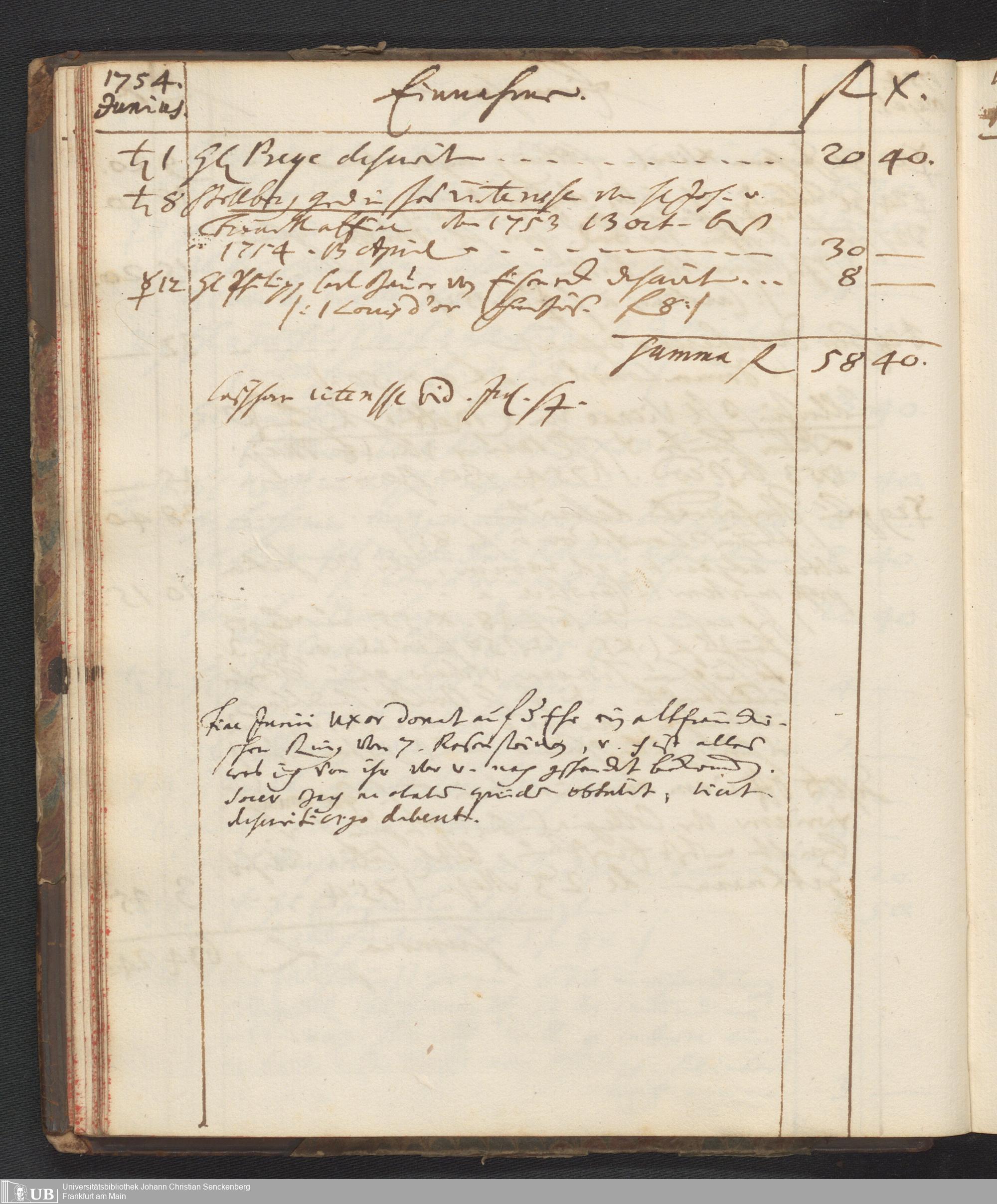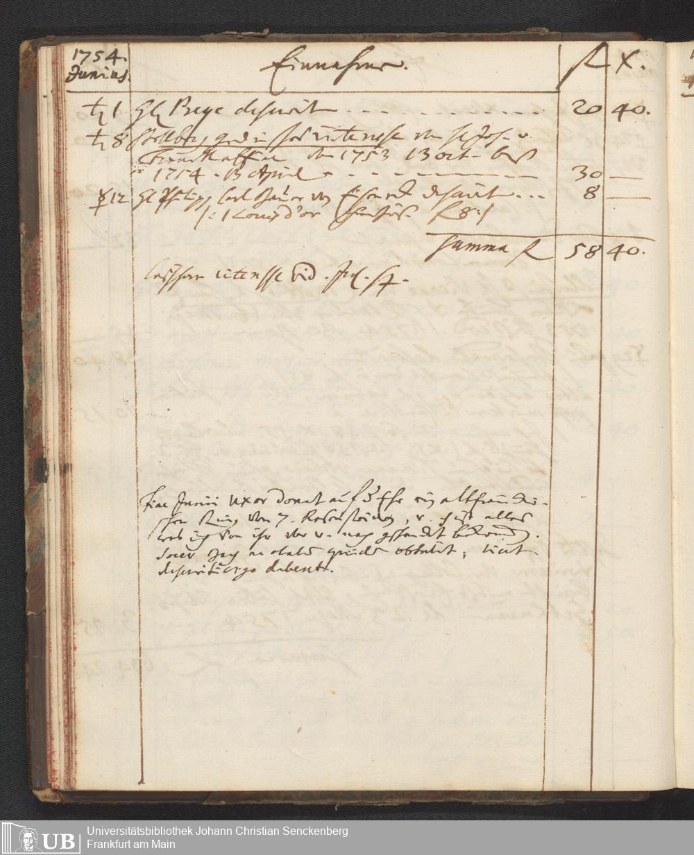 Na 31 Nachlass Johann Christian Senckenberg, 449 - Einnahmebuch