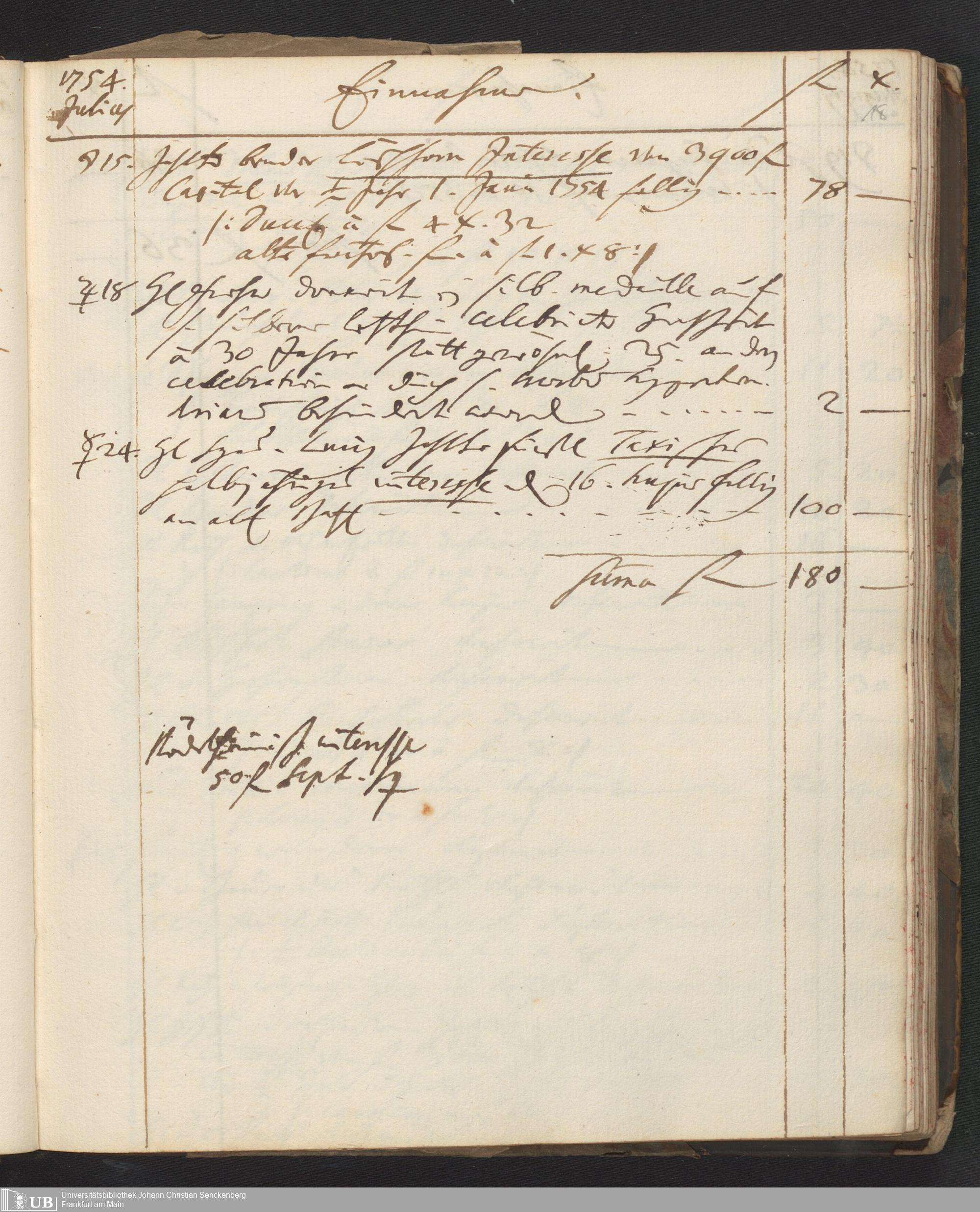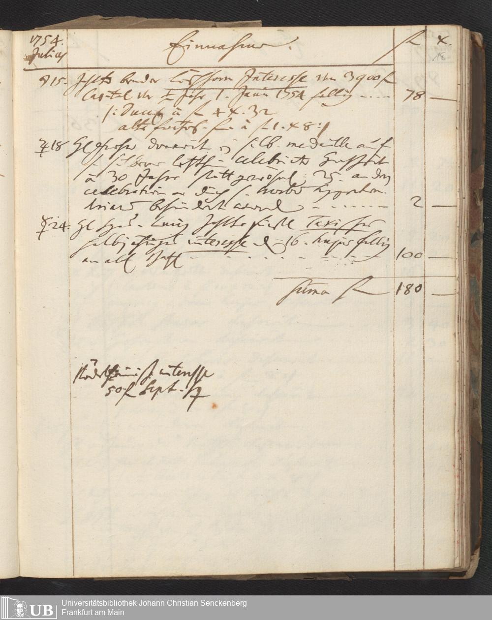 Na 31 Nachlass Johann Christian Senckenberg, 449 - Einnahmebuch