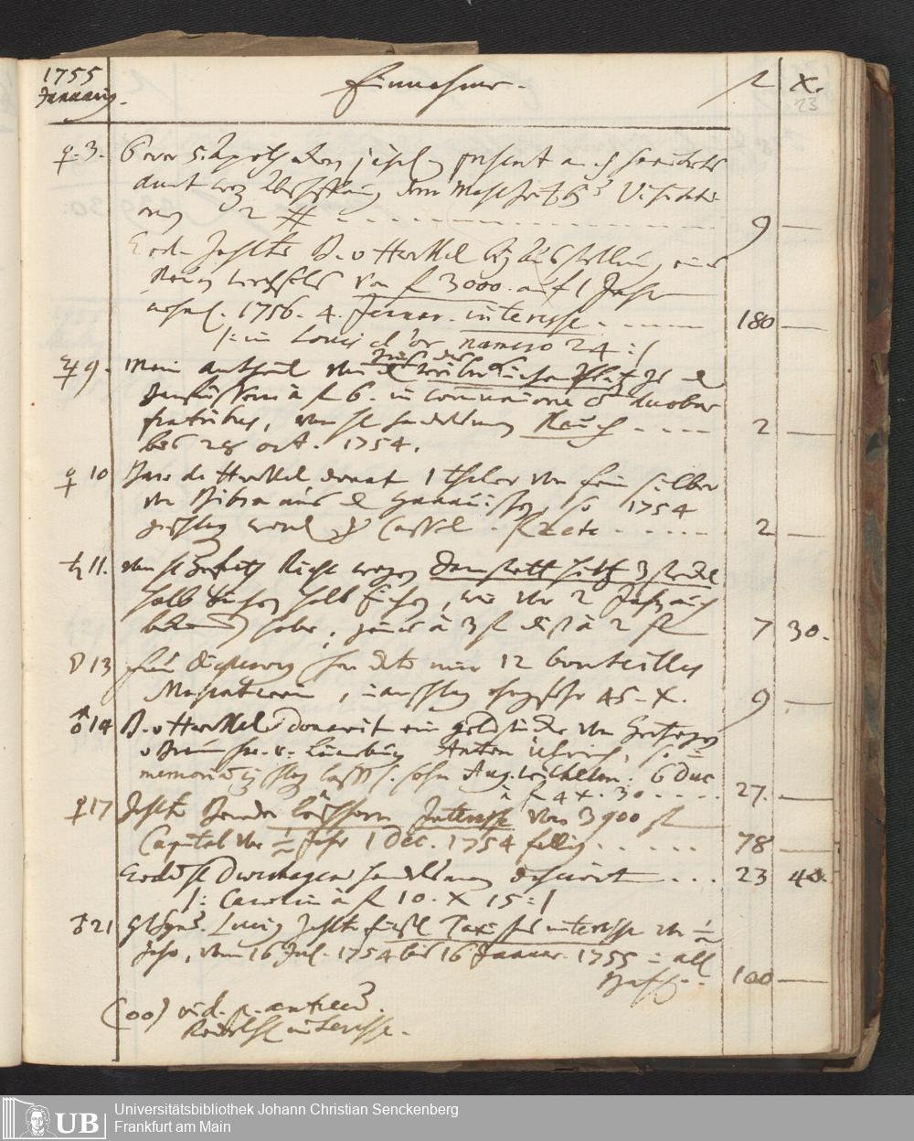 Na 31 Nachlass Johann Christian Senckenberg, 449 - Einnahmebuch