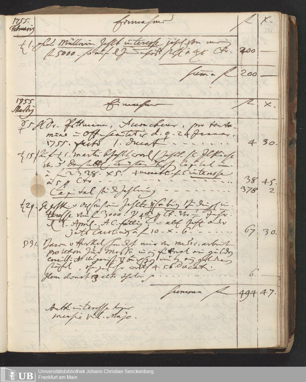 Na 31 Nachlass Johann Christian Senckenberg, 449 - Einnahmebuch