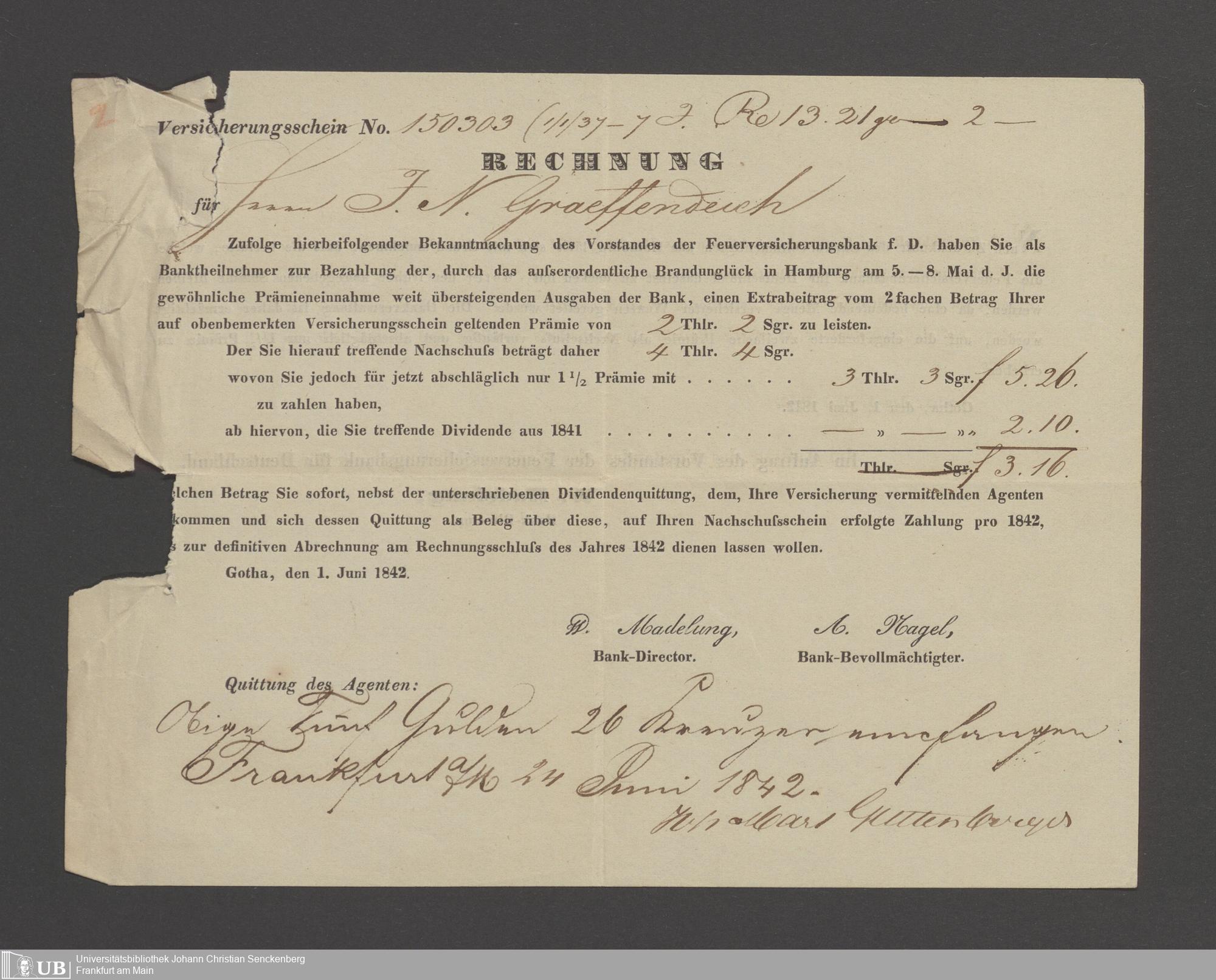 B 5 Dr. Senckenbergische Stiftung, 21 - Feuerversicherungspapiere