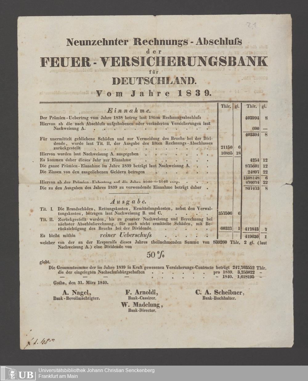 B 5 Dr. Senckenbergische Stiftung, 21 - Feuerversicherungspapiere