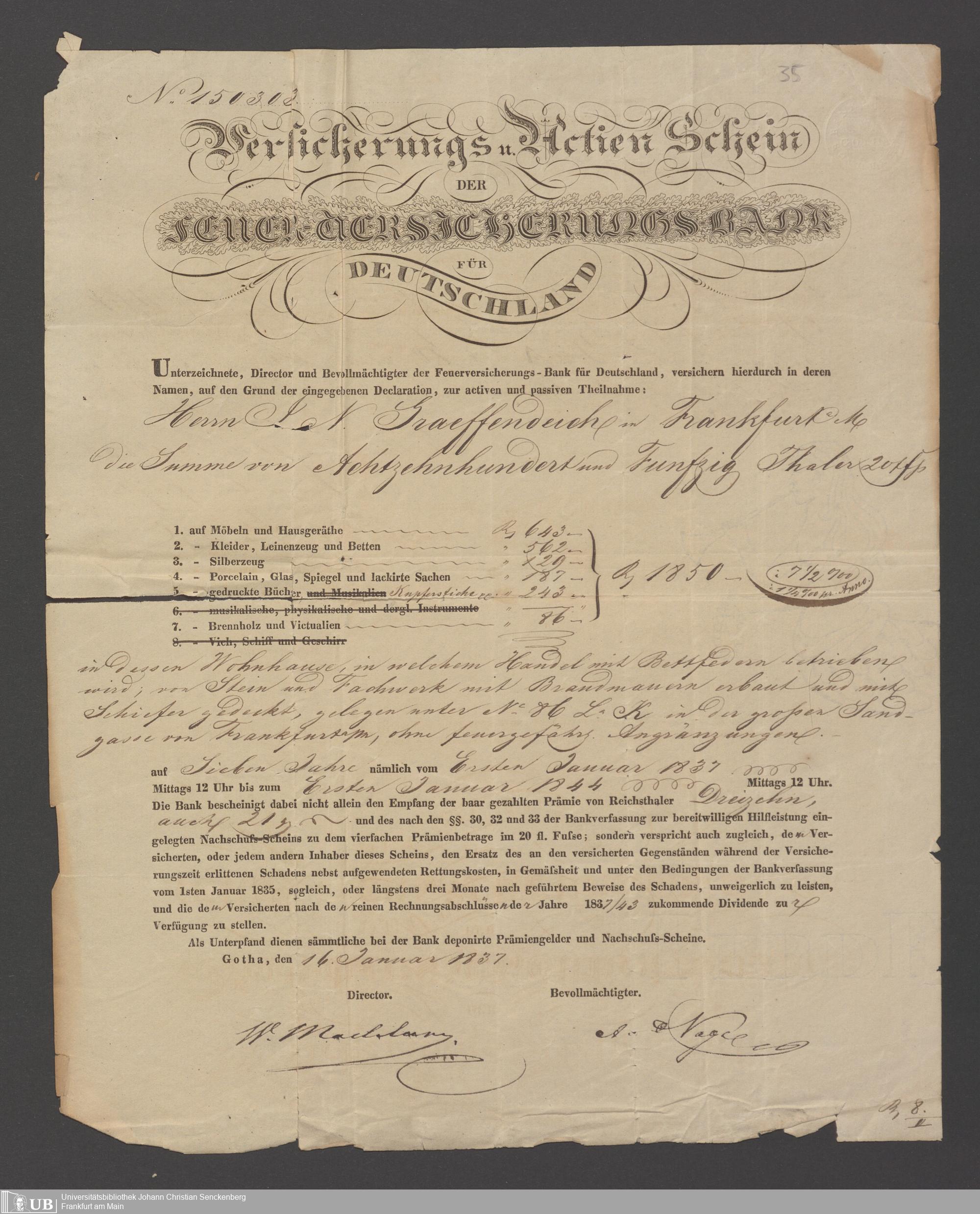 B 5 Dr. Senckenbergische Stiftung, 21 - Feuerversicherungspapiere