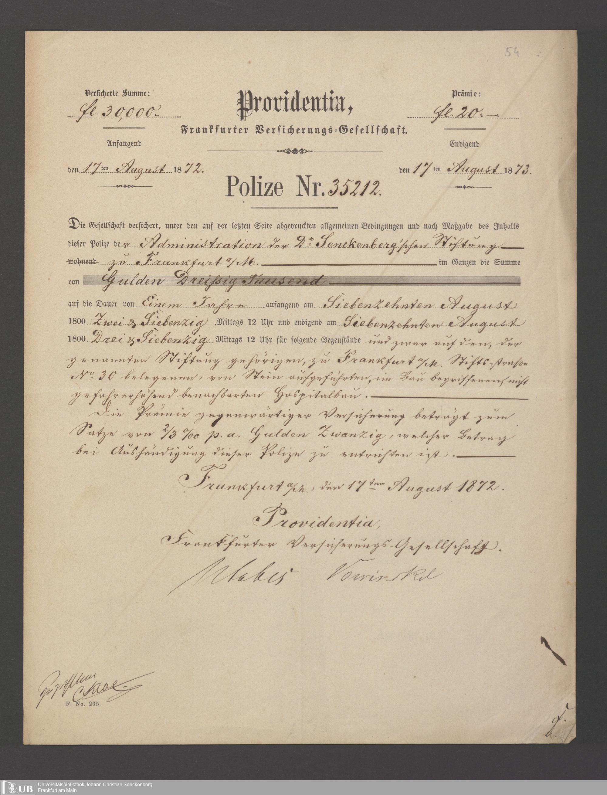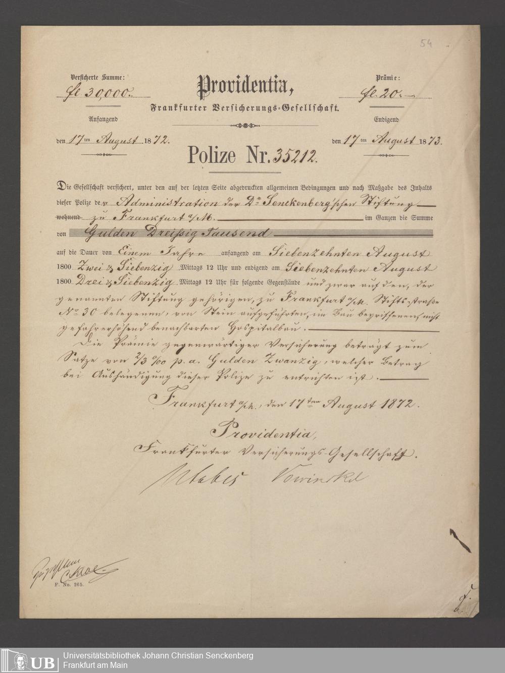 B 5 Dr. Senckenbergische Stiftung, 21 - Feuerversicherungspapiere
