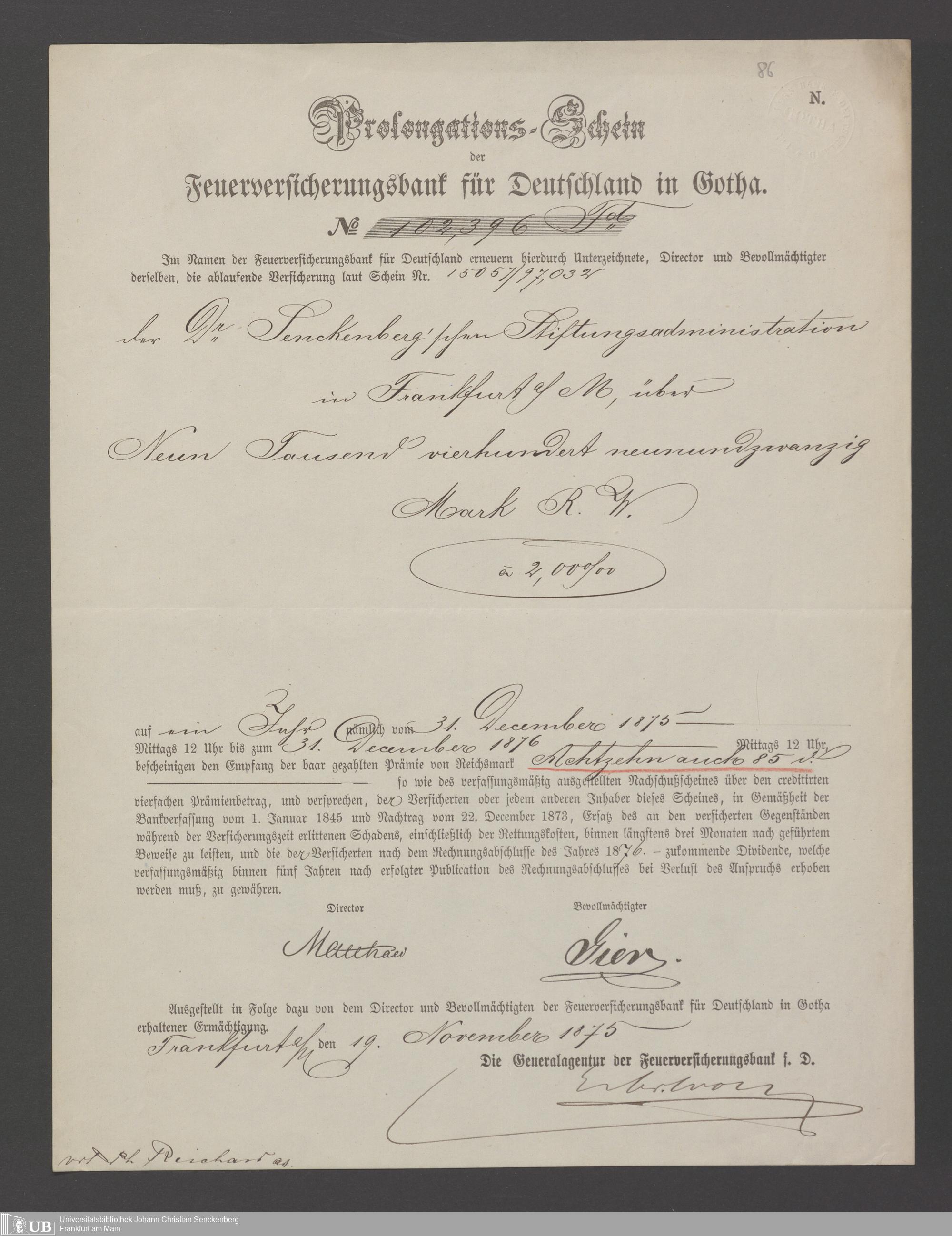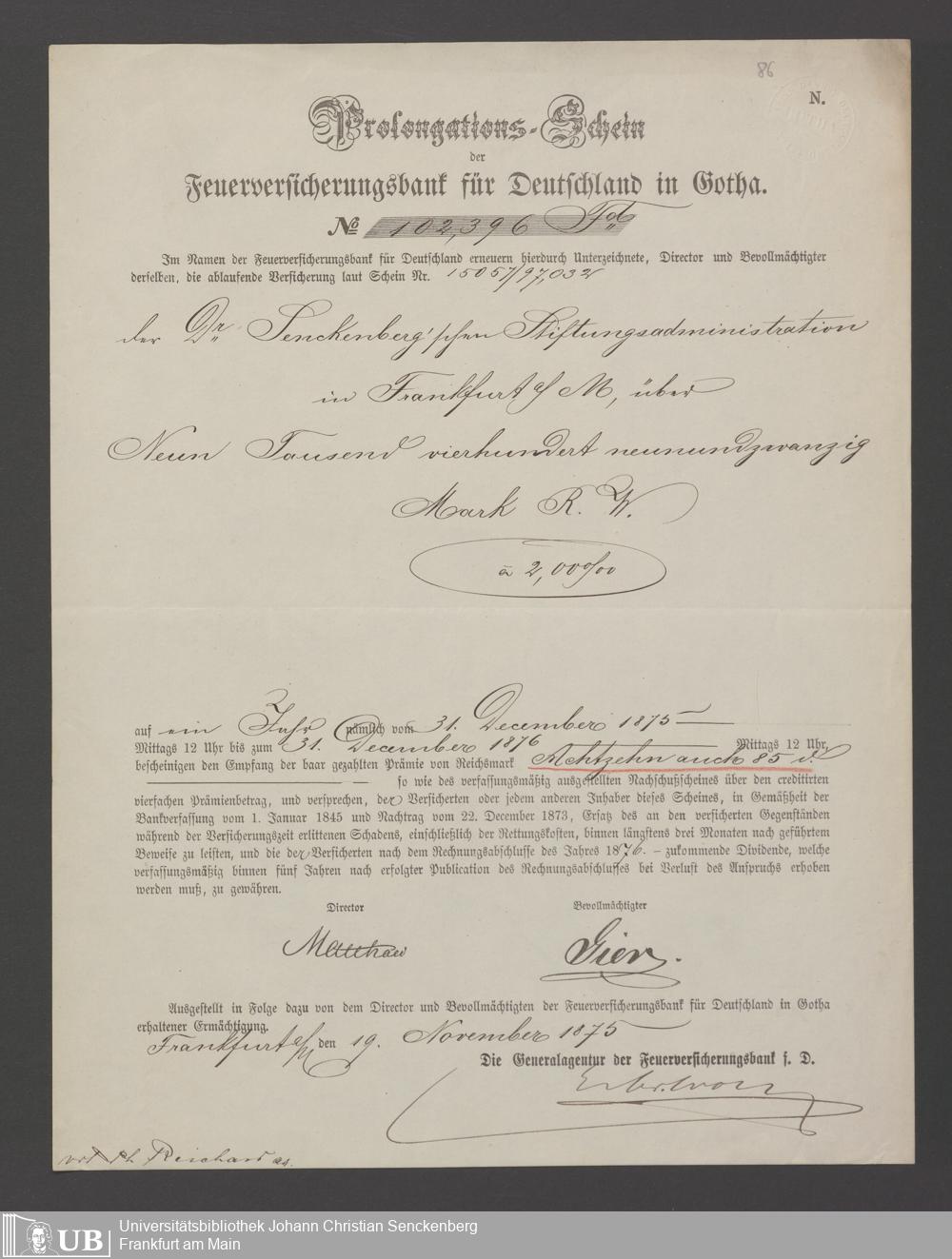 B 5 Dr. Senckenbergische Stiftung, 21 - Feuerversicherungspapiere