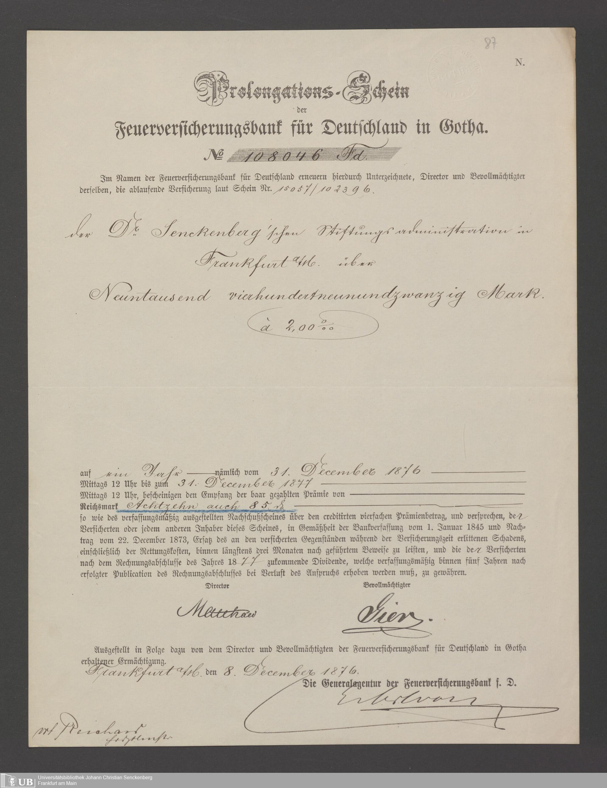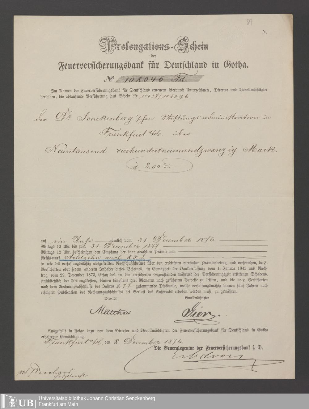 B 5 Dr. Senckenbergische Stiftung, 21 - Feuerversicherungspapiere
