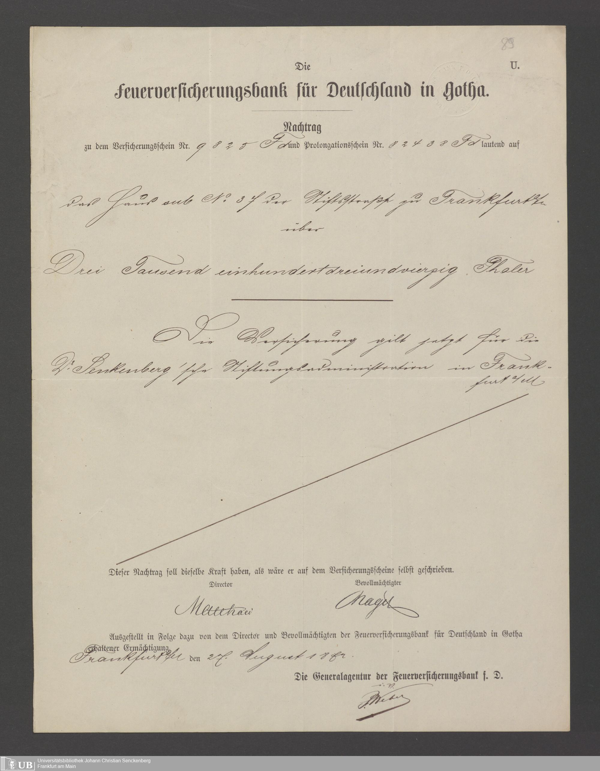 B 5 Dr. Senckenbergische Stiftung, 21 - Feuerversicherungspapiere